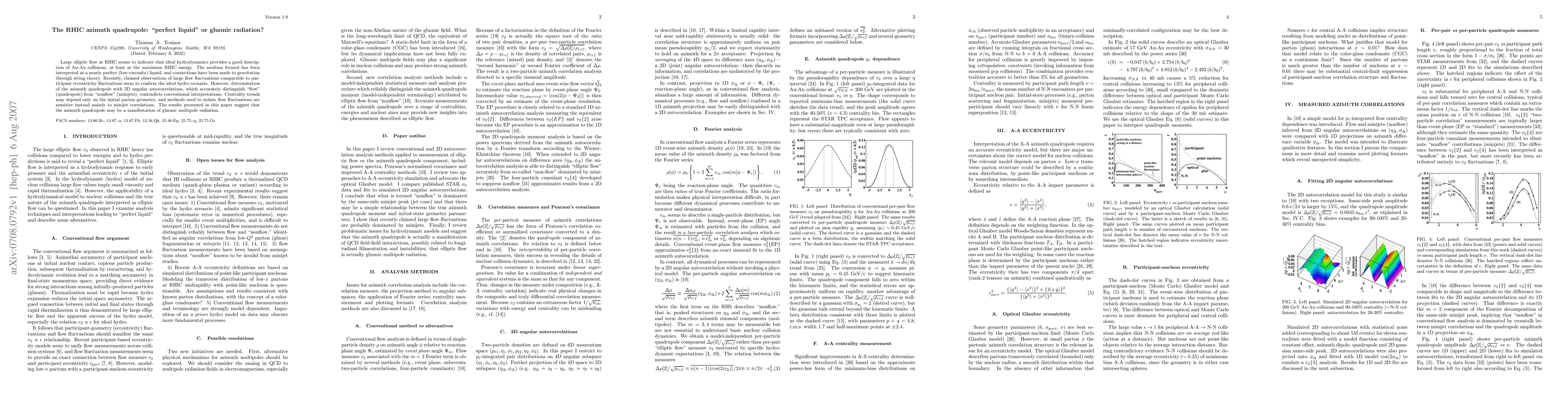 Large elliptic flow at RHIC seems to indicate that ideal hydrodynamics provides a good description of Au-Au collisions, at least at the maximum RHIC energy. The medium formed has been interpreted as a nearly perfect (low-viscosity) liquid, and connections have been made to gravitation through string theory. Recently, claimed observations of large flow fluctuations comparable to participant eccentricity fluctuations seem to confirm the ideal hydro scenario. However, determination of the azimuth quadrupole with 2D angular autocorrelations, which accurately distinguish ``flow'' (quadrupole) from ``nonflow'' (minijets), contradicts conventional interpretations. Centrality trends may depend only on the initial parton geometry, and methods used to isolate flow fluctuations are sensitive instead mainly to minijet correlations. The results presented in this paper suggest that the azimuth quadrupole may be a manifestation of gluonic multipole radiation.
