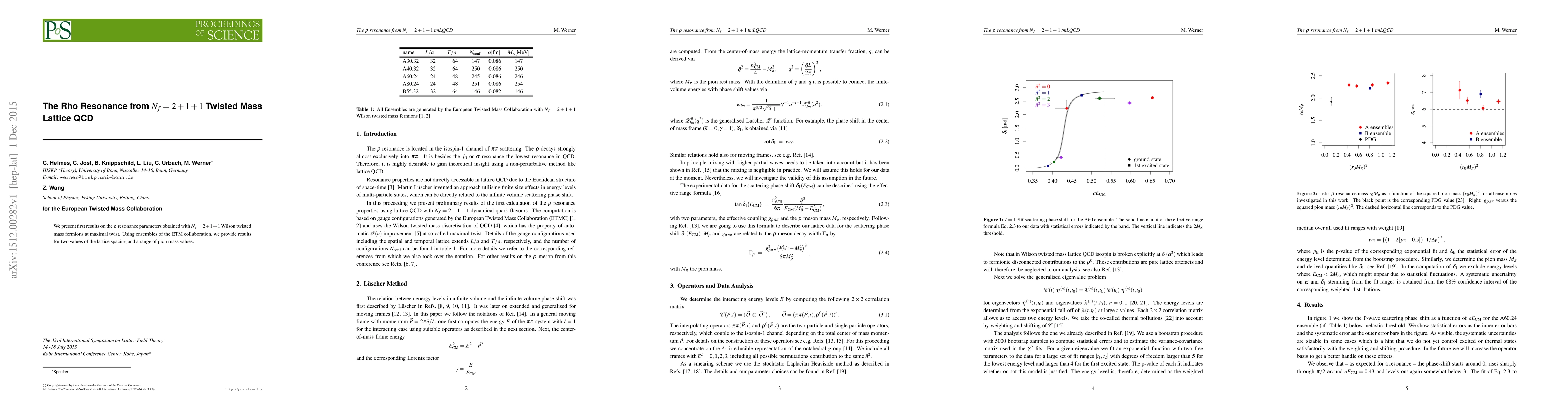 Researchers used a specific type of lattice QCD simulation to study the rho resonance in a 2+1+1 flavor model, providing results for two lattice spacings and varying pion mass values.