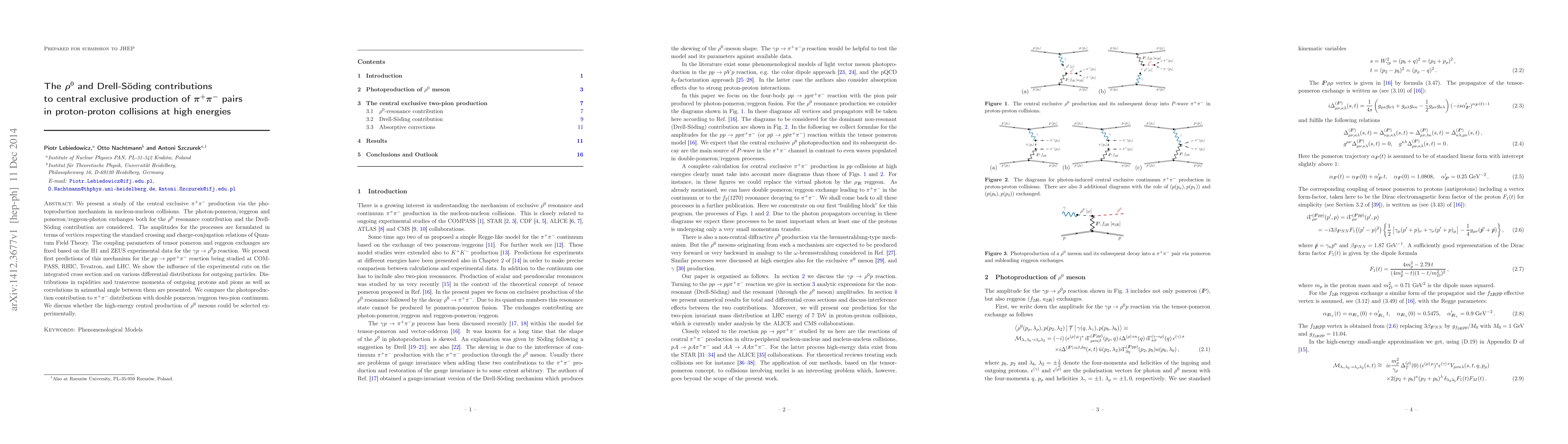 This paper investigates central exclusive $\pi^{+} \pi^{-}$ production via photoproduction in proton-proton collisions, considering both $\rho^{0}$ resonance and Drell-S\"oding contributions. Predictions for the $pp \to pp \pi^{+} \pi^{-}$ reaction are presented, analyzing the influence of experimental cuts on cross sections and distributions, and comparing the results with double pomeron/reggeon two-pion continuum.
