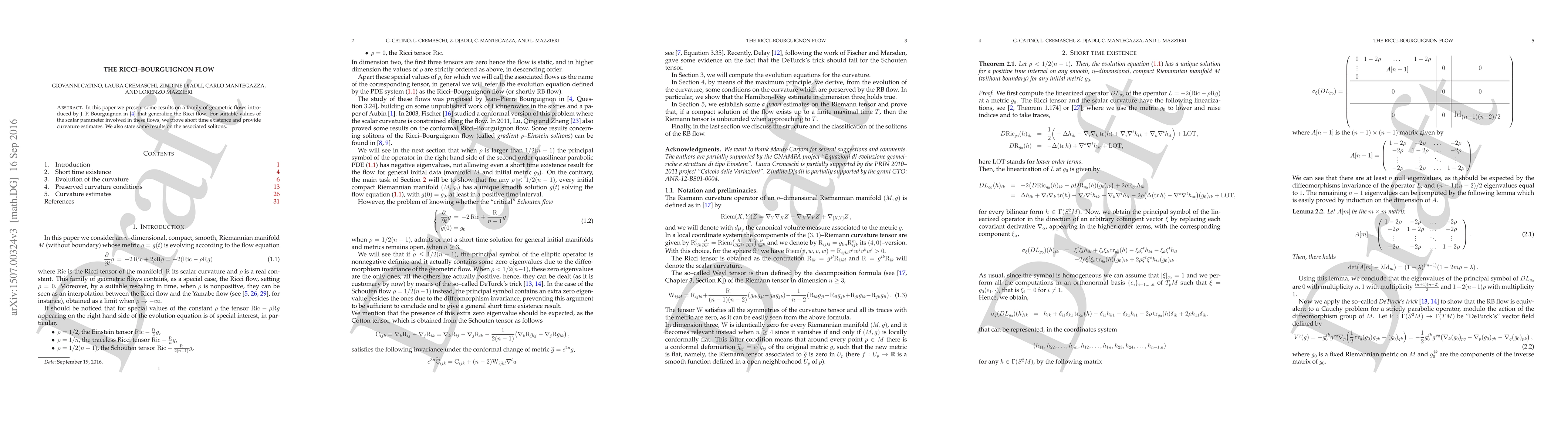 Summary: This paper investigates a generalized Ricci flow introduced by Bourguignon, proving short-time existence and curvature estimates for specific parameter values, and also discusses associated soliton solutions.