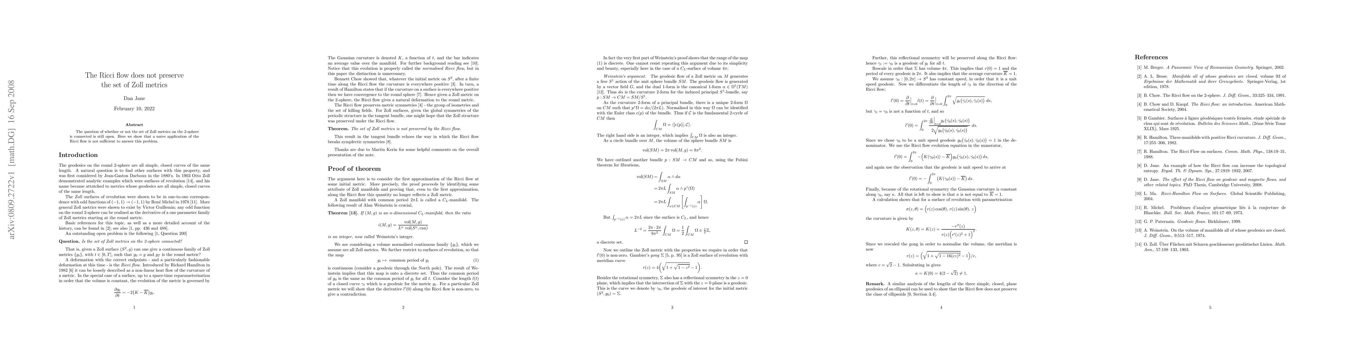 Summary: This paper demonstrates that the Ricci flow does not preserve Zoll metrics on the 2-sphere, indicating that a straightforward Ricci flow approach cannot determine the connectivity of the set of Zoll metrics.