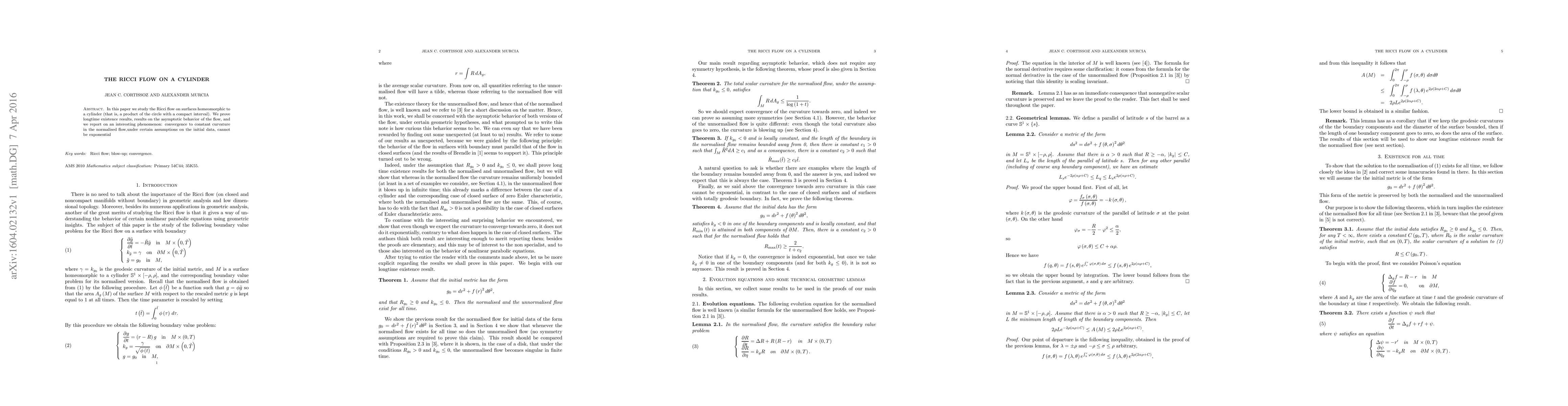 Researchers studied the Ricci flow on a cylinder and found that under certain assumptions, it converges to constant curvature but not exponentially; they also proved longtime existence results and reported asymptotic behavior.