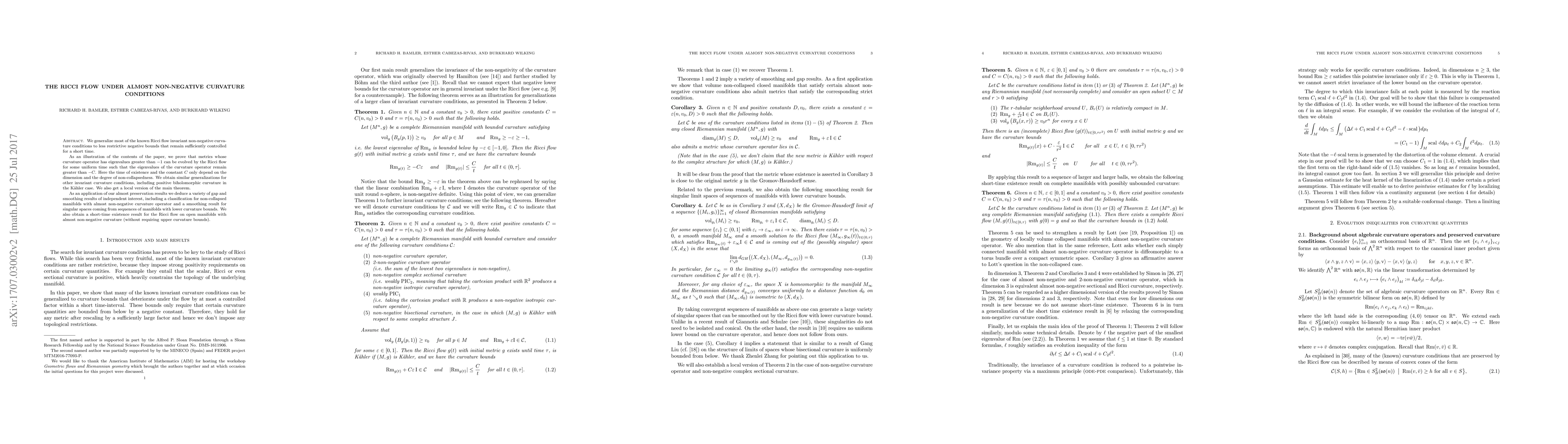 This paper generalizes Ricci flow invariant non-negative curvature conditions to less restrictive almost non-negative bounds, proving that metrics with curvature eigenvalues greater than $-1$ can evolve under Ricci flow for a uniform time while maintaining eigenvalues greater than $-C$. It also establishes similar results for other curvature conditions and derives various gap and smoothing results, including a classification for non-collapsed manifolds.