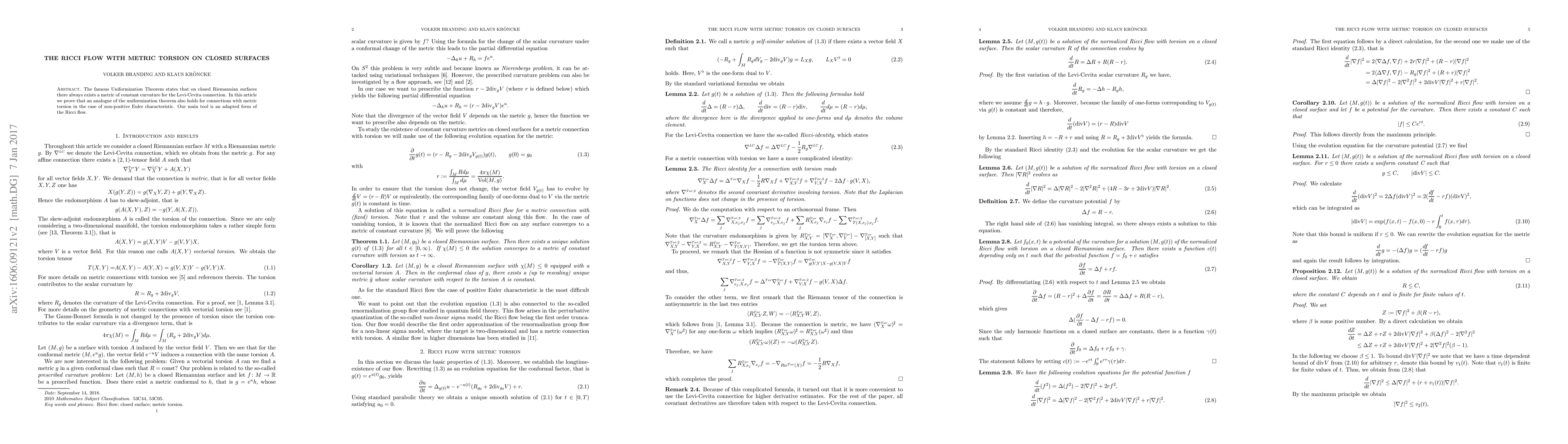 This paper proves an analogue of the Uniformization Theorem for closed Riemannian surfaces with metric torsion, showing that such surfaces can be transformed to a metric of constant curvature using an adapted Ricci flow, particularly for surfaces with non-positive Euler characteristic.