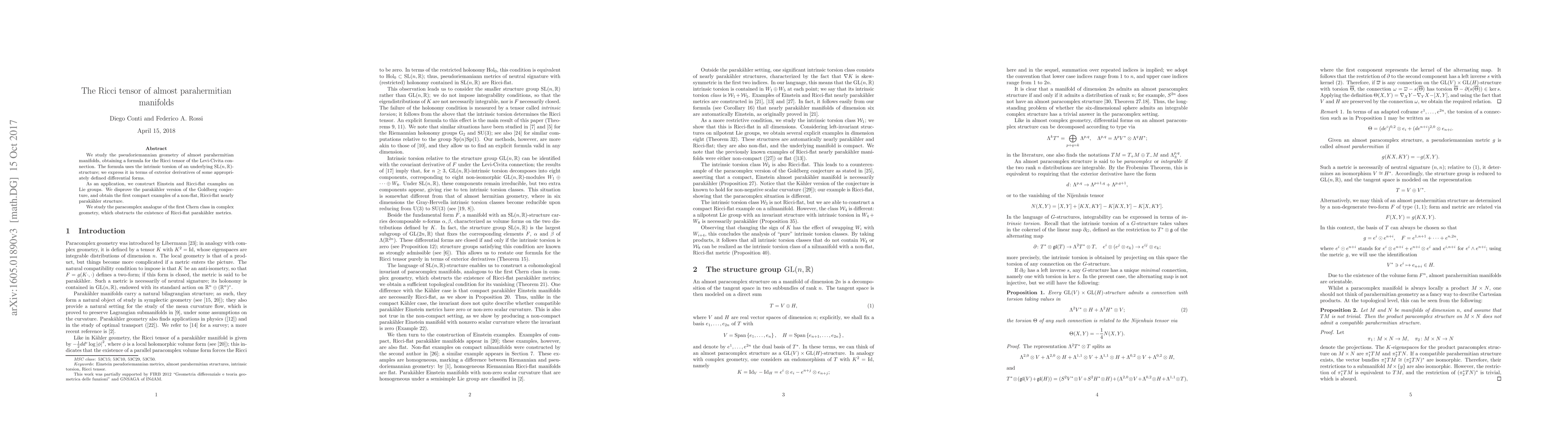 This paper develops a formula for the Ricci tensor of almost parahermitian manifolds based on their intrinsic torsion, provides examples of Einstein and Ricci-flat structures on Lie groups, and disproves the parakähler version of the Goldberg conjecture by constructing compact, non-flat, Ricci-flat nearly parakähler structures.