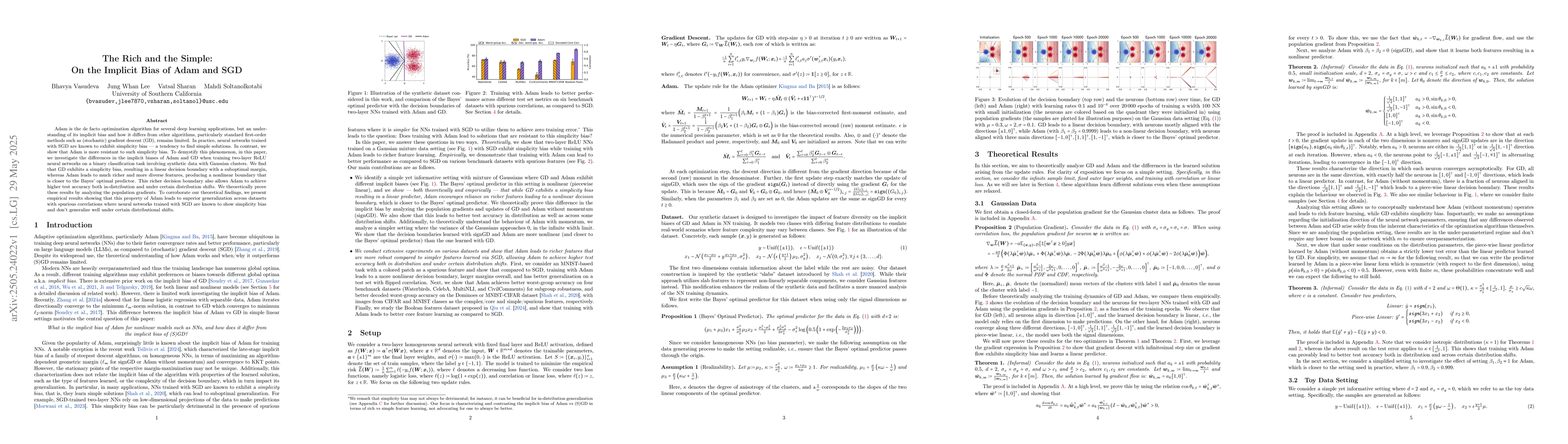 This research highlights the contrasting simplicity biases of Adam and SGD, providing insights into Adam's superior generalization capabilities under distribution shifts, which differentiates it from prior understanding of these optimization methods.