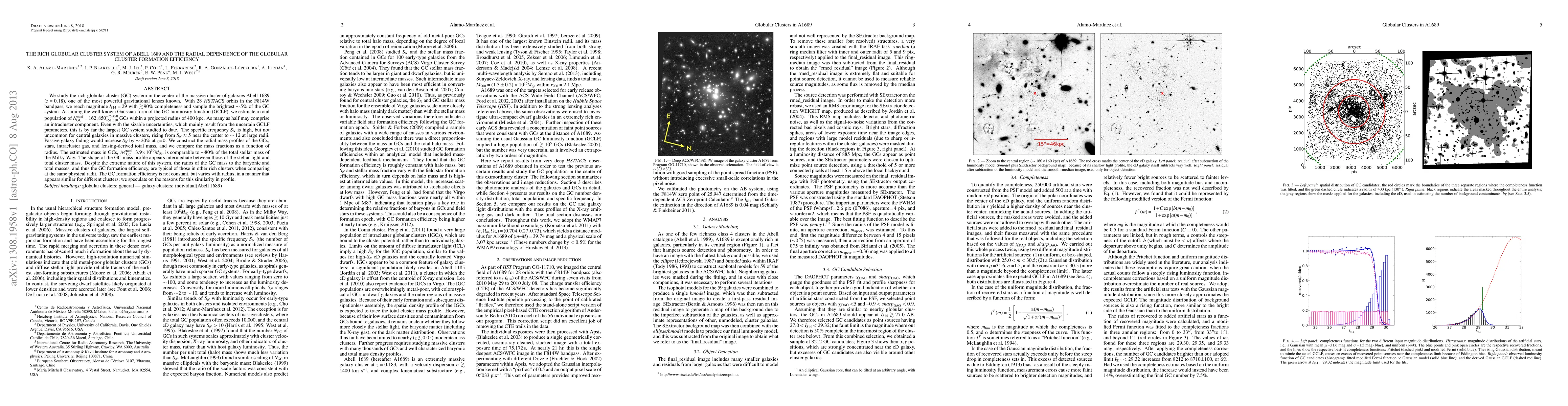 This study reveals a rich globular cluster system in Abell 1689, with over 162,000 clusters estimated to exist within its central region. The GC formation efficiency varies with radius, but is comparable to that of other rich clusters, suggesting a universal pattern.