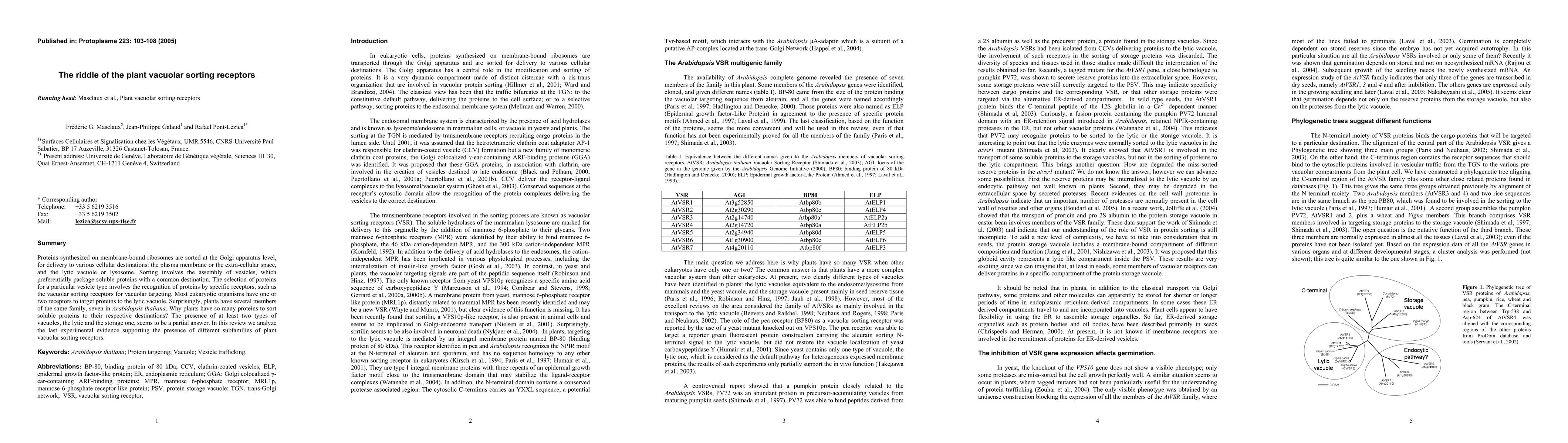 Proteins synthesized on membrane-bound ribosomes are sorted at the Golgi apparatus level for delivery to various cellular destinations: the plasma membrane or the extracellular space, and the lytic vacuole or lysosome. Sorting involves the assembly of vesicles, which preferentially package soluble proteins with a common destination. The selection of proteins for a particular vesicle type involves the recognition of proteins by specific receptors, such as the vacuolar sorting receptors for vacuolar targeting. Most eukaryotic organisms have one or two receptors to target proteins to the lytic vacuole. Surprisingly, plants have several members of the same family, seven in Arabidopsis thaliana. Why do plants have so many proteins to sort soluble proteins to their respective destinations? The presence of at least two types of vacuoles, lytic and storage, seems to be a partial answer. In this review we analyze the last experimental evidence supporting the presence of different subfamilies of plant vacuolar sorting receptors.