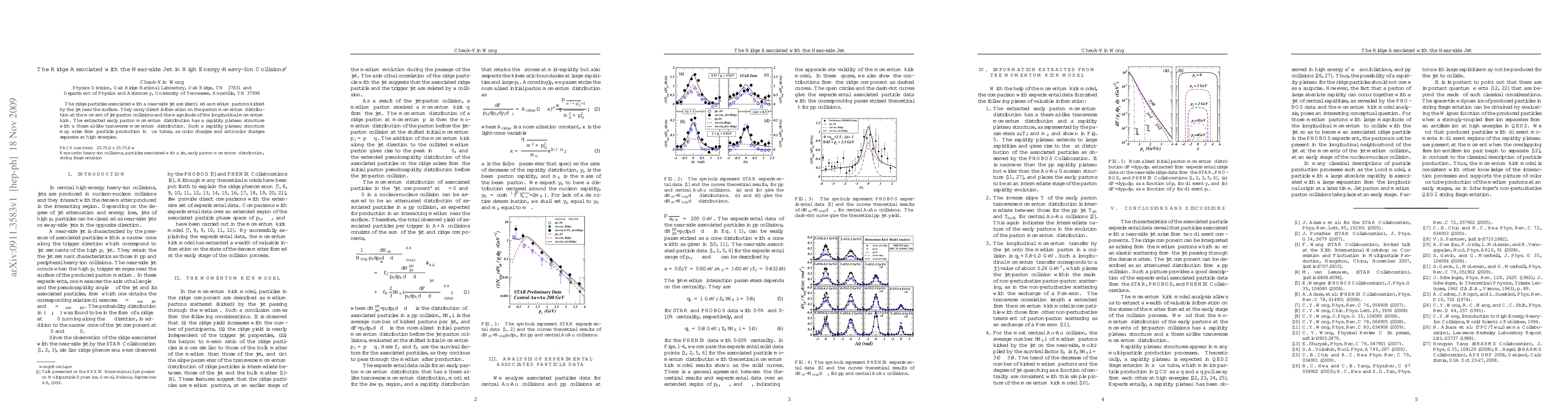 The ridge particles associated with a near-side jet are identified as medium partons kicked by the jet near the surface. They carry direct information on the parton momentum distribution at the moment of jet-parton collisions and the magnitude of the longitudinal momentum kick. The extracted early parton momentum distribution has a rapidity plateau structure with a thermal-like transverse momentum distribution. Such a rapidity plateau structure may arise from particle production in flux tubes, as color charges and anti-color charges separate at high energies.