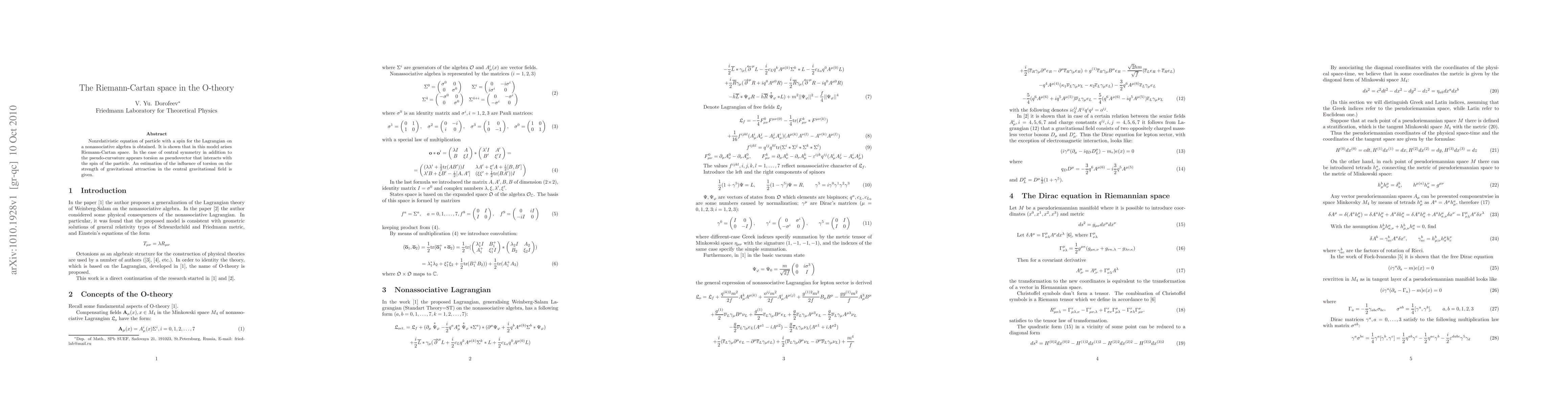 This paper derives a nonrelativistic equation for a spinning particle on a nonassociative algebra, revealing a Riemann-Cartan space. It introduces torsion as a pseudovector interacting with the particle's spin under central symmetry, and estimates torsion's effect on gravitational attraction.
