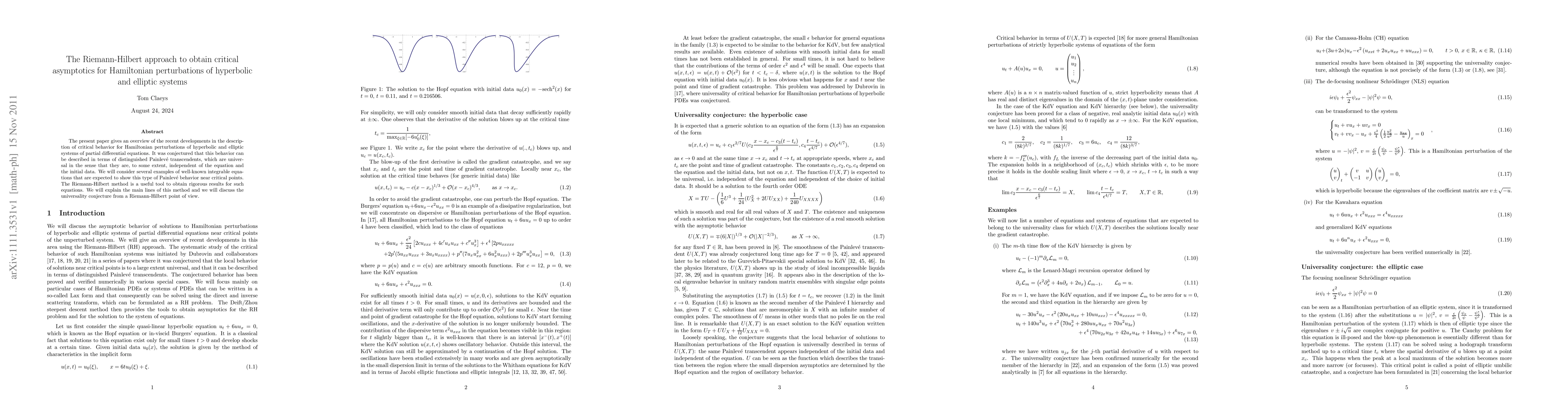 This paper reviews recent advancements in understanding critical behavior for Hamiltonian perturbations of hyperbolic and elliptic systems using the Riemann-Hilbert approach. It explores the conjecture that this behavior is described by universal Painlevé transcendents, and applies the Riemann-Hilbert method to rigorously analyze several integrable equations exhibiting such Painlevé behavior near critical points.