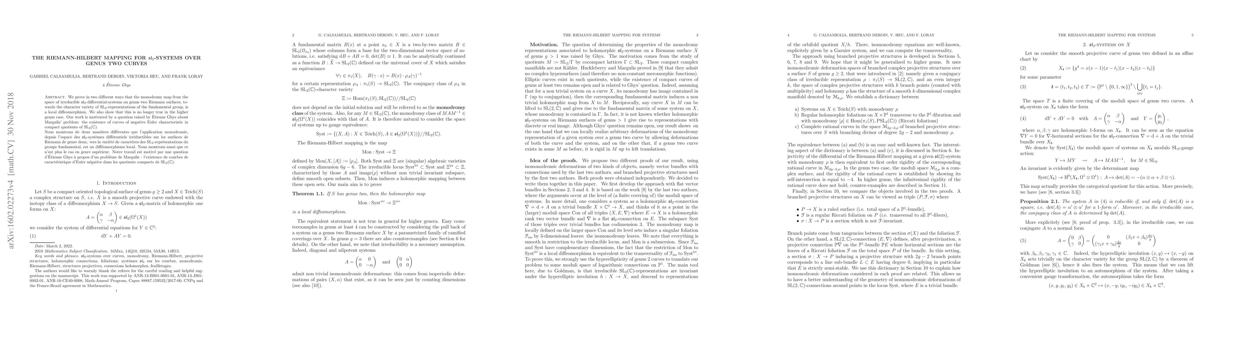 We prove in two different ways that the monodromy map from the space of irreducible $\mathfrak{sl}_2$-differential-systems on genus two Riemann surfaces, towards the character variety of $\mathrm{SL}_2$-representations of the fundamental group, is a local diffeomorphism. This is motivated by a question raised by \'Etienne Ghys about Margulis' problem: existence of curves of negative Euler characteristic in compact quotients of $\mathrm{SL}_2(\mathbb{C})$.