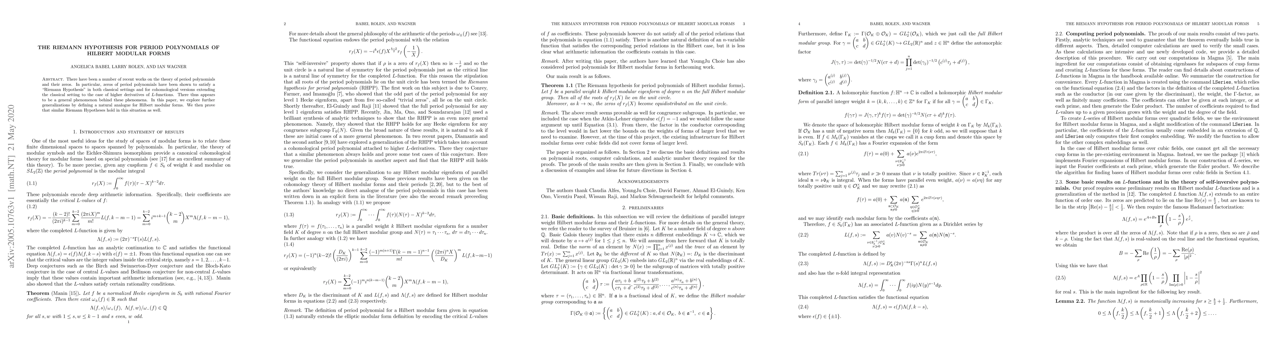 This paper investigates period polynomials associated with Hilbert modular forms, establishing that their zeros satisfy a Riemann Hypothesis analogous to the classical setting, extending recent findings on zero distribution phenomena. The results generalize the Riemann Hypothesis to higher-dimensional number fields.