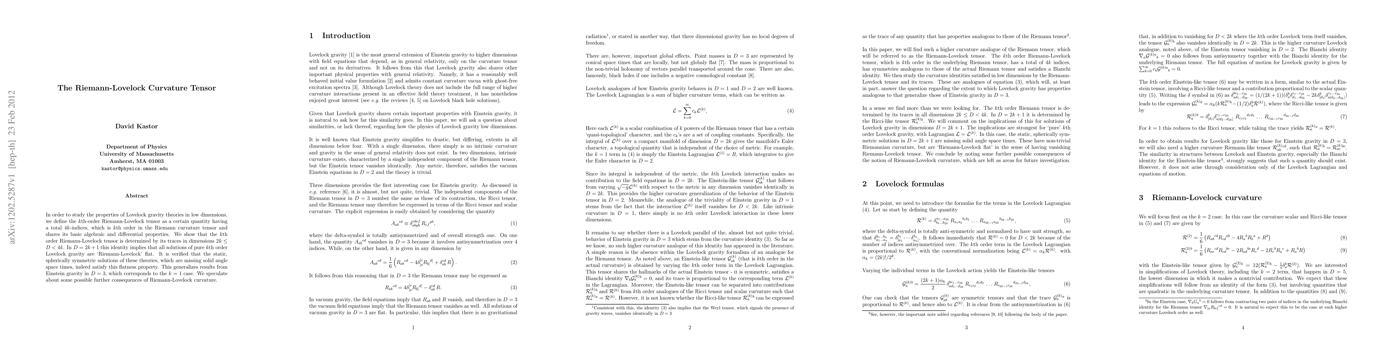 In order to study the properties of Lovelock gravity theories in low dimensions, we define the kth-order Riemann-Lovelock tensor as a certain quantity having a total 4k-indices, which is kth-order in the Riemann curvature tensor and shares its basic algebraic and differential properties. We show that the kth-order Riemann-Lovelock tensor is determined by its traces in dimensions 2k \le D <4k. In D=2k+1 this identity implies that all solutions of pure kth-order Lovelock gravity are `Riemann-Lovelock' flat. It is verified that the static, spherically symmetric solutions of these theories, which are missing solid angle space times, indeed satisfy this flatness property. This generalizes results from Einstein gravity in D=3, which corresponds to the k=1 case. We speculate about some possible further consequences of Riemann-Lovelock curvature.