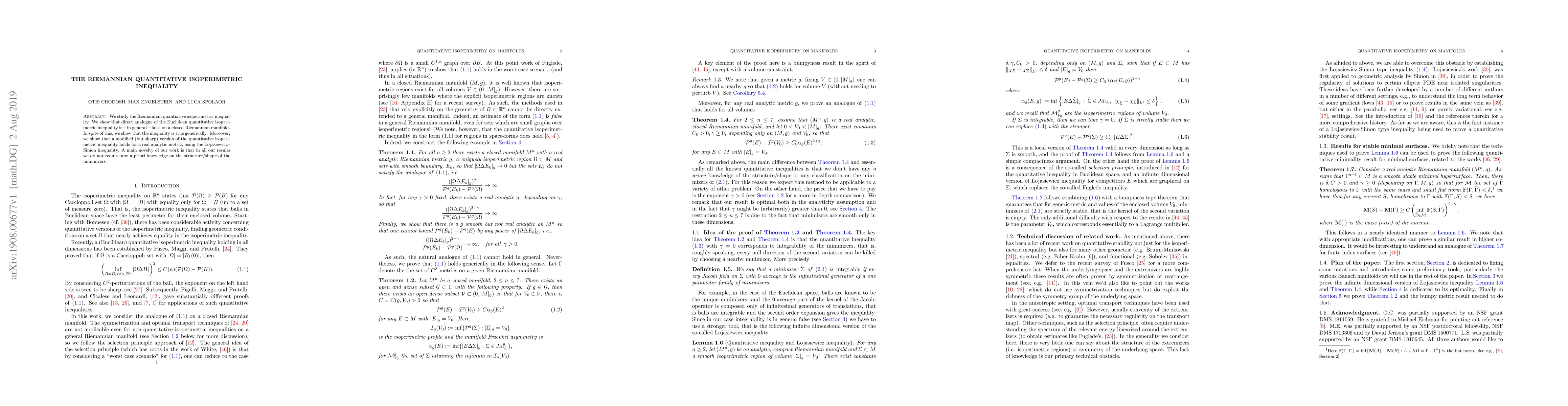 We study the Riemannian quantiative isoperimetric inequality. We show that direct analogue of the Euclidean quantitative isoperimetric inequality is--in general--false on a closed Riemannian manifold. In spite of this, we show that the inequality is true generically. Moreover, we show that a modified (but sharp) version of the quantitative isoperimetric inequality holds for a real analytic metric, using the Lojasiewicz-Simon inequality. A main novelty of our work is that in all our results we do not require any a priori knowledge on the structure/shape of the minimizers.