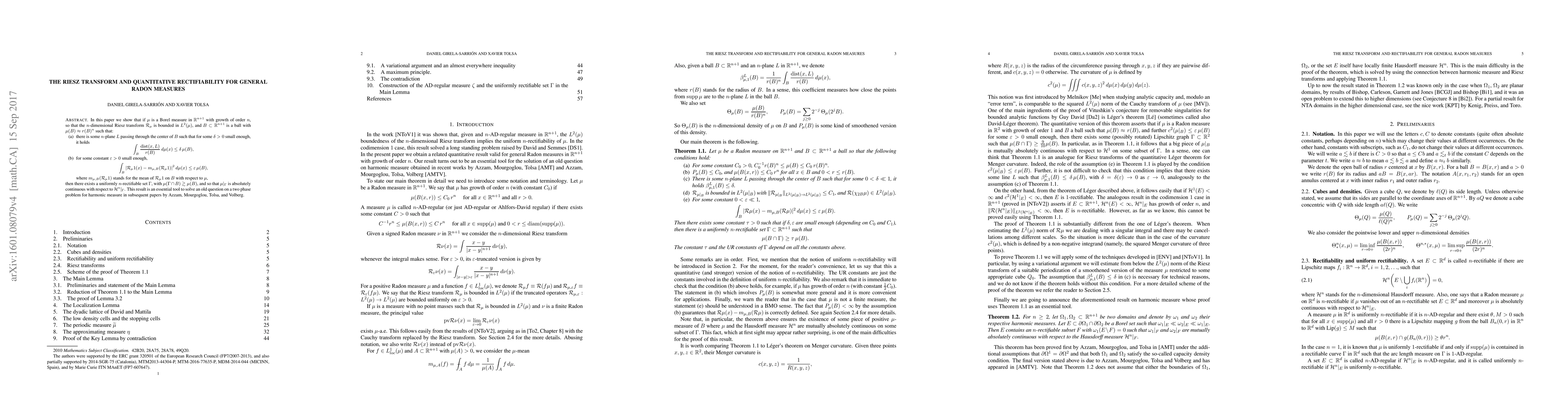 In this paper we show that if $\mu$ is a Borel measure in $\mathbb R^{n+1}$ with growth of order $n$, so that the $n$-dimensional Riesz transform $R_\mu$ is bounded in $L^2(\mu)$, and $B\subset\mathbb R^{n+1}$ is a ball with $\mu(B)\approx r(B)^n$ such that: (a) there is some $n$-plane $L$ passing through the center of $B$ such that for some $\delta>0$ small enough, it holds $\int_B \frac{dist(x,L)}{r(B)}\,d\mu(x)\leq \delta\,\mu(B),$ (b) for some constant $\epsilon>0$ small enough, $\int_B |R_\mu1(x) - m_{\mu,B}(R_\mu1)|^2\,d\mu(x) \leq \epsilon \,\mu(B)$, where $m_{\mu,B}(R_\mu1)$ stands for the mean of $R_\mu1$ on $B$ with respect to $\mu$; then there exists a uniformly $n$-rectifiable subset $\Gamma$, with $\mu(\Gamma\cap B)\gtrsim \mu(B)$, and so that $\mu|_\Gamma$ is absolutely continuous with respect to $H^n|_\Gamma$. This result is an essential tool to solve an old question on a two phase problem for harmonic measure in a subsequent paper by Azzam, Mourgoglou and Tolsa.