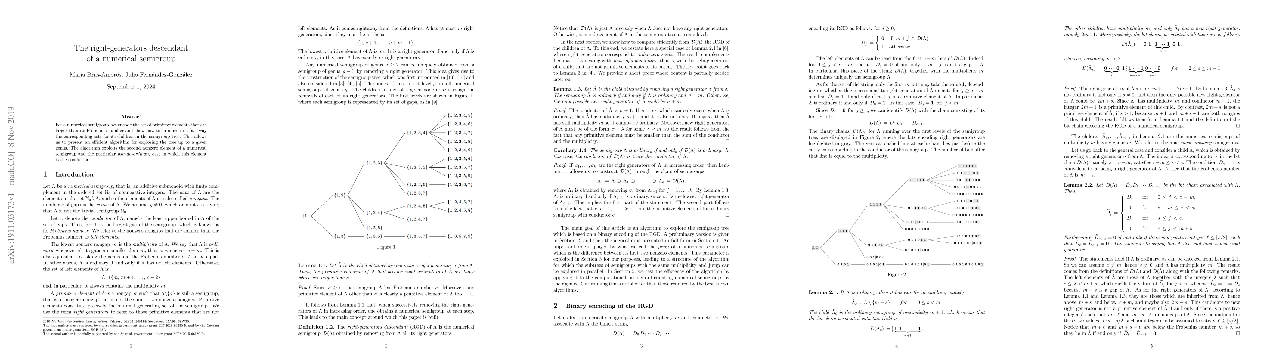 Summary: The paper presents an efficient algorithm for exploring the semigroup tree of a numerical semigroup by encoding the set of primitive elements larger than its Frobenius number and leveraging the second nonzero element, particularly in the pseudo-ordinary case where it is the conductor. This method facilitates fast generation of descendant sets.