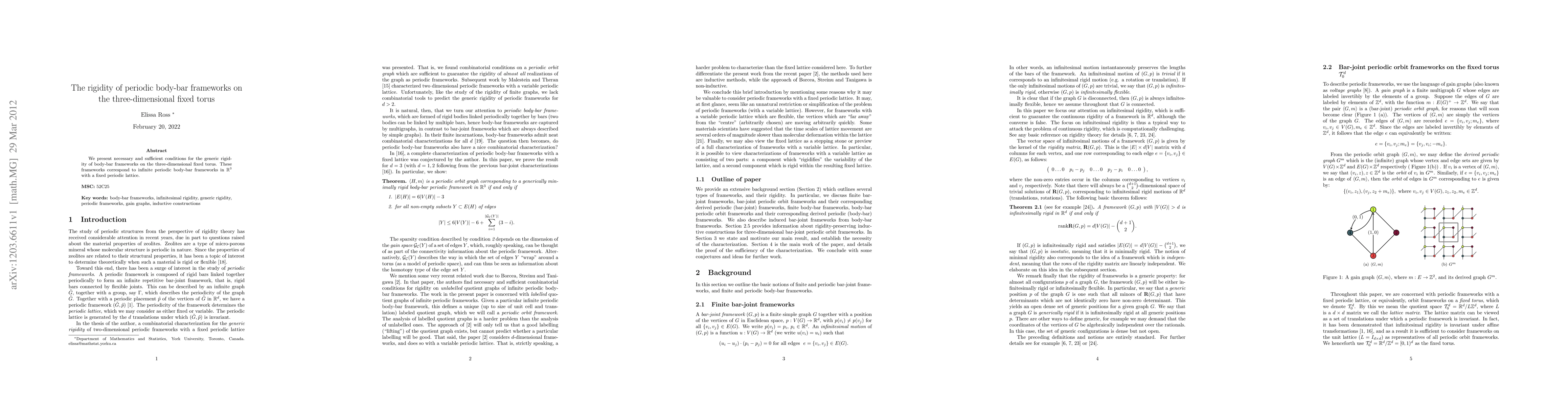 We present necessary and sufficient conditions for the generic rigidity of body-bar frameworks on the three-dimensional fixed torus. These frameworks correspond to infinite periodic body-bar frameworks in $\mathbb{R}^3$ with a fixed periodic lattice.