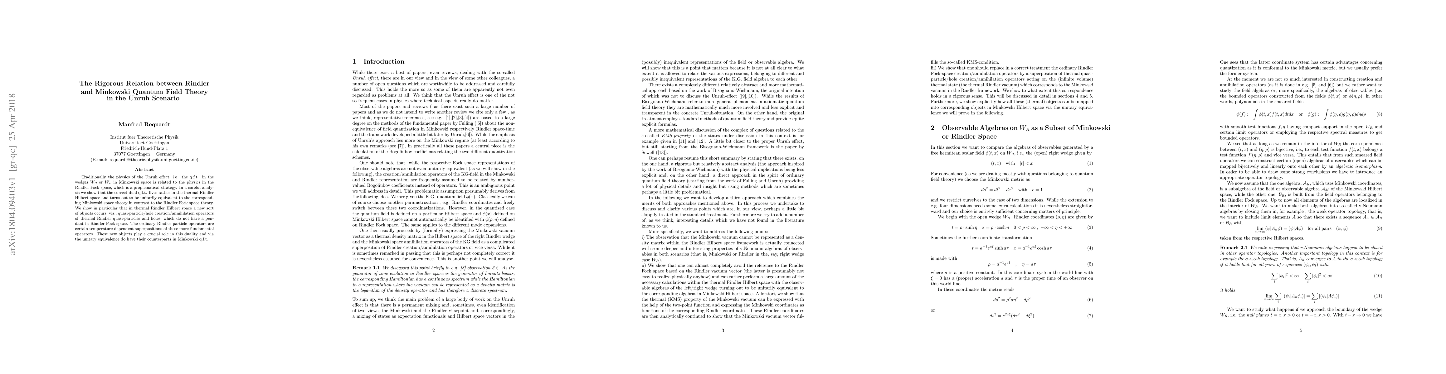 Traditionally the physics of the Unruh effect, i.e. the q.f.t. in the wedges $W_R$ or $W_L$ in Minkowski space is related to the physics in the Rindler Fock space, which is a proplematical strategy. In a careful analysis we show that the correct dual q.f.t. lives rather in the thermal Rindler Hilbert space and turns out to be unitarily equivalent to the corresponding Minkowski space theory in contrast to the Rindler Fock space theory. We show in particular that in thermal Rindler Hilbert space a new sort of objects occurs, viz., quasi-particle/hole creation/annihilation operators of thermal Rindler quasi-particles and holes, which do not have a pendant in Rindler Fock space. The ordinary Rindler particle operators are certain temperature dependent superpositions of these more fundamental operators. These new objects play a crucial role in this duality and via the unitary equivalence do have their counterparts in Minkowski q.f.t.