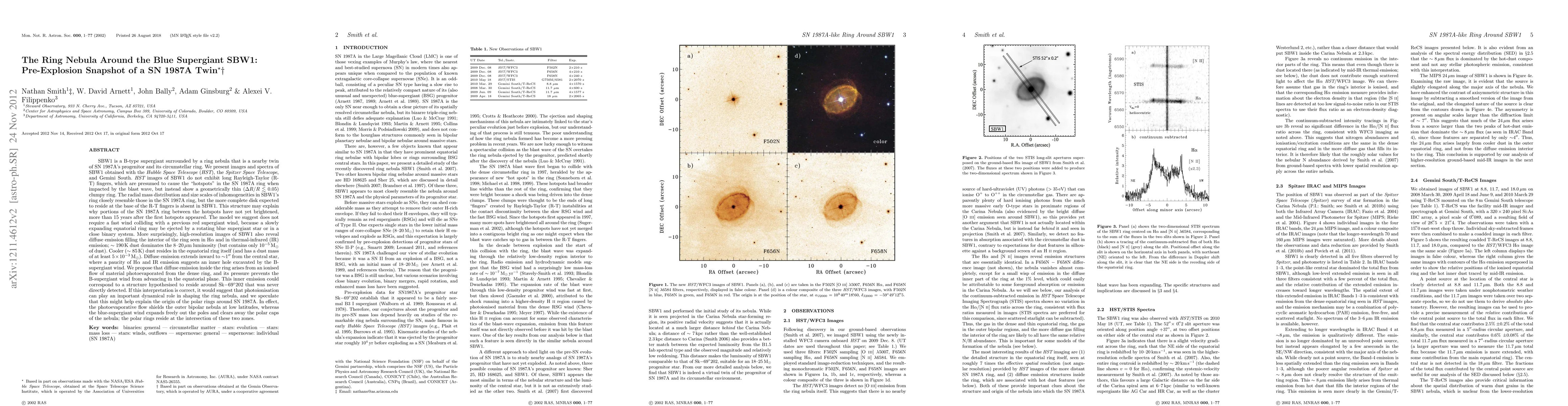 This study uses HST, Spitzer, and Gemini South data to examine SBW1, a B supergiant encircled by a ring nebula similar to SN1987A's. Unlike SN1987A, SBW1's ring lacks Rayleigh-Taylor fingers, displaying instead a thin, clumpy structure. The research reveals diffuse emission within the ring, suggesting photoevaporation of material and an inner hole carved by the wind. The findings propose that photoionization dynamically shapes the ring nebula, possibly explaining the origin of polar rings around SN1987A.