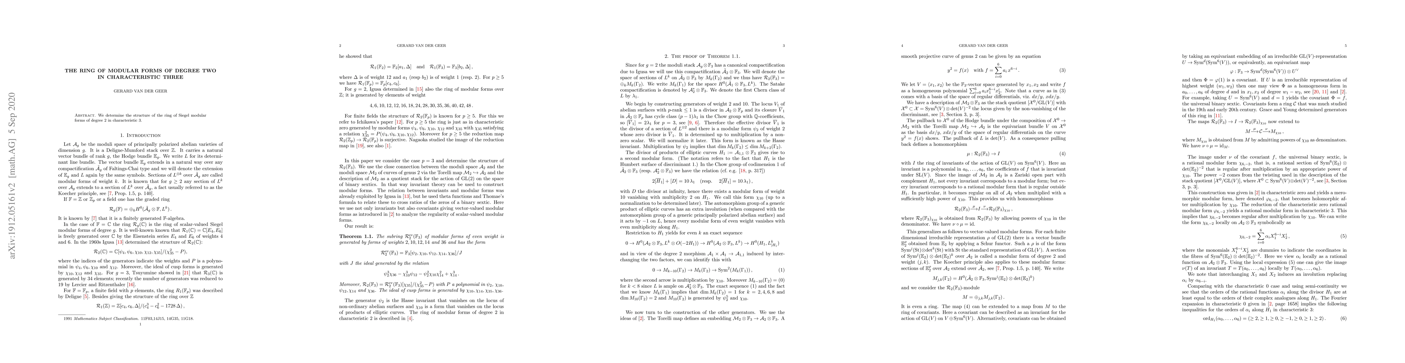 Summary: This paper investigates the structure of the ring of Siegel modular forms of degree 2 within the context of characteristic three arithmetic, providing a detailed analysis of its algebraic properties.