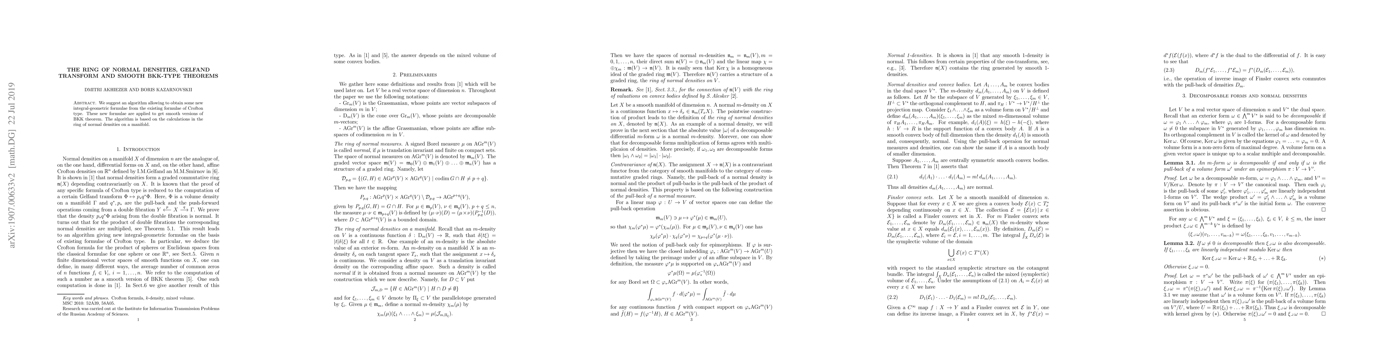 We suggest an algorithm allowing to obtain some new integral-geometric formulae from the existing formulae of Crofton type. These new formulae are applied to get smooth versions of BKK theorem. The algorithm is based on the calculations in the ring of normal densities on a manifold.