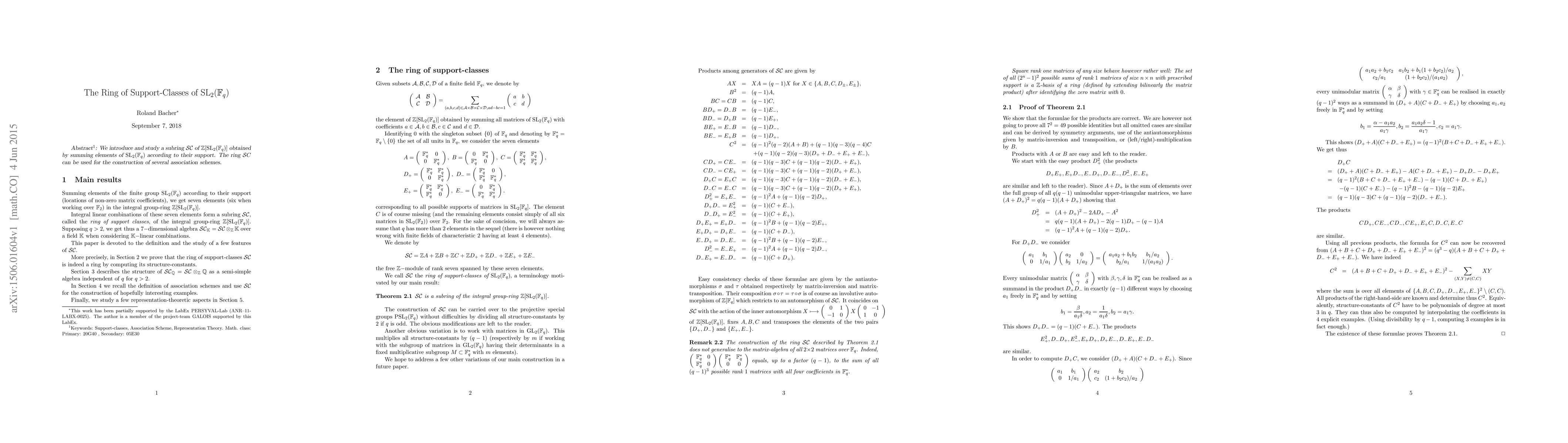 We introduce and study a subring $\mathcal{SC}$ of $\mathbb Z[\mathrm{SL}\_2(\mathbb F\_q)]$ obtained by summing elements of $\mathrm{SL}\_2(\mathbb F\_q)$ according to their support. The ring $\mathcal SC$ can be used for the construction of several association schemes.