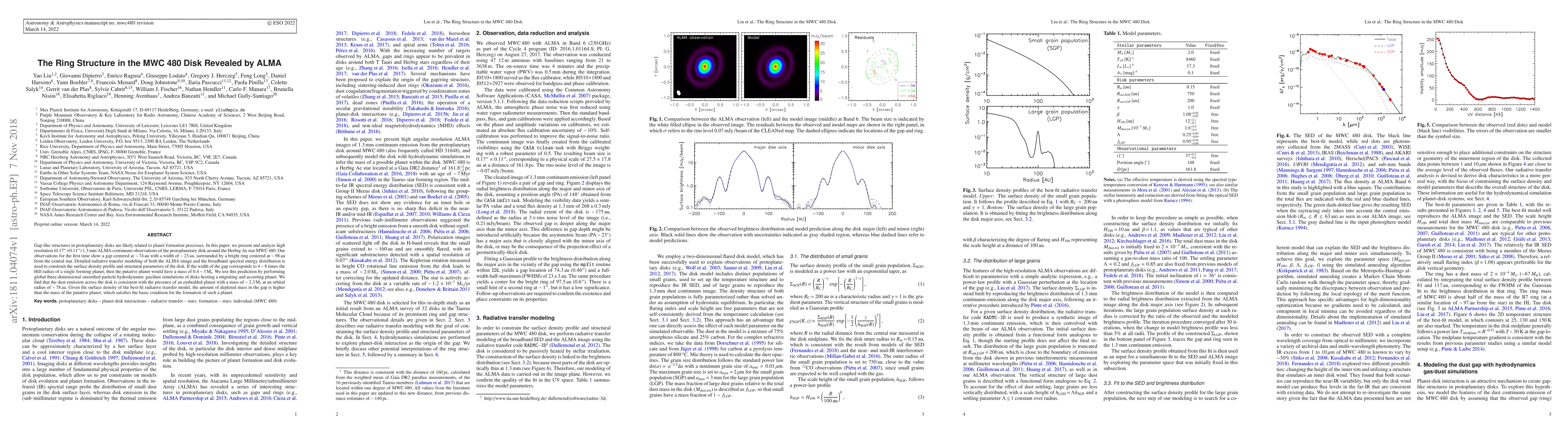 Gap-like structures in protoplanetary disks are likely related to planet formation processes. In this paper, we present and analyze high resolution (0.17*0.11 arcsec) 1.3 mm ALMA continuum observations of the protoplanetary disk around the Herbig Ae star MWC 480. Our observations for the first time show a gap centered at ~74au with a width of ~23au, surrounded by a bright ring centered at ~98au from the central star. Detailed radiative transfer modeling of both the ALMA image and the broadband spectral energy distribution is used to constrain the surface density profile and structural parameters of the disk. If the width of the gap corresponds to 4~8 times the Hill radius of a single forming planet, then the putative planet would have a mass of 0.4~3 M_Jup. We test this prediction by performing global three-dimensional smoothed particle hydrodynamic gas/dust simulations of disks hosting a migrating and accreting planet. We find that the dust emission across the disk is consistent with the presence of an embedded planet with a mass of ~2.3 M_Jup at an orbital radius of ~78au. Given the surface density of the best-fit radiative transfer model, the amount of depleted mass in the gap is higher than the mass of the putative planet, which satisfies the basic condition for the formation of such a planet.