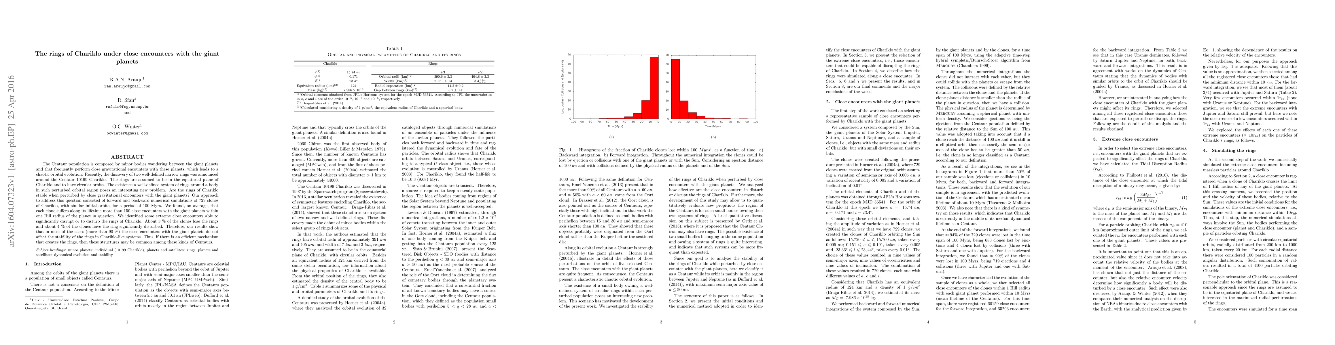 A study of Chariklo's rings found that more than 90% of simulations showed no disruption from close encounters with giant planets, suggesting ring stability is common in similar Centaur systems.