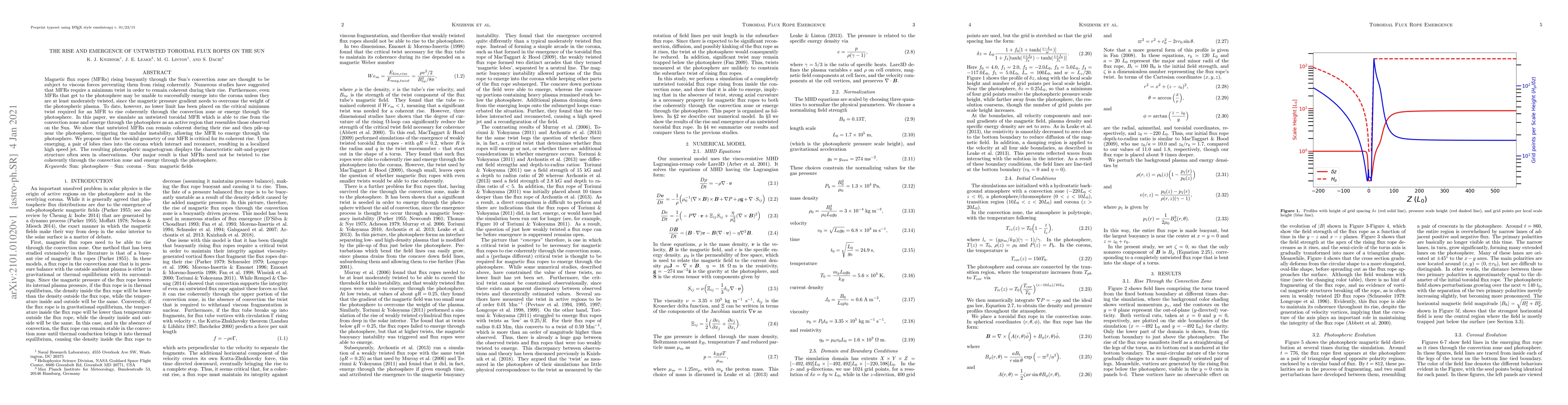 Magnetic flux ropes (MFRs) rising buoyantly through the Sun's convection zone are thought to be subject to viscous forces preventing them from rising coherently. Numerous studies have suggested that MFRs require a minimum twist in order to remain coherent during their rise. Furthermore, even MFRs that get to the photosphere may be unable to successfully emerge into the corona unless they are at least moderately twisted, since the magnetic pressure gradient needs to overcome the weight of the photospheric plasma. To date, however, no lower limit has been placed on the critical minimum twist required for an MFR to rise coherently through the convection zone or emerge through the photosphere. In this paper, we simulate an untwisted toroidal MFR which is able to rise from the convection zone and emerge through the photosphere as an active region that resembles those observed on the Sun. We show that untwisted MFRs can remain coherent during their rise and then pile-up near the photosphere, triggering the undular instability, allowing the MFR to emerge through the photosphere. We propose that the toroidal geometry of our MFR is critical for its coherent rise. Upon emerging, a pair of lobes rises into the corona which interact and reconnect, resulting in a localized high speed jet. The resulting photospheric magnetogram displays the characteristic salt-and-pepper structure often seen in observations. Our major result is that MFRs need not be twisted to rise coherently through the convection zone and emerge through the photosphere.
