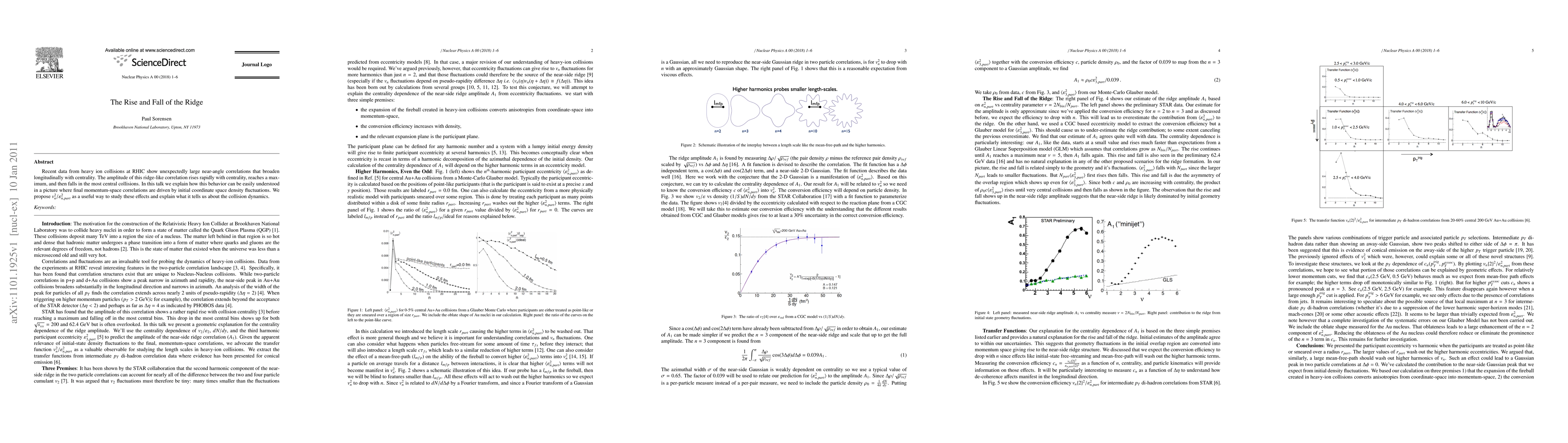 Recent data from heavy ion collisions at RHIC show unexpectedly large near-angle correlations that broaden longitudinally with centrality. The amplitude of this ridge-like correlation rises rapidly with centrality, reaches a maximum, and then falls in the most central collisions. In this talk we explain how this behavior can be easily understood in a picture where final momentum-space correlations are driven by initial coordinate space density fluctuations. We propose $v_n^2/\epsilon_{n,part}^{2}$ as a useful way to study these effects and explain what it tells us about the collision dynamics.