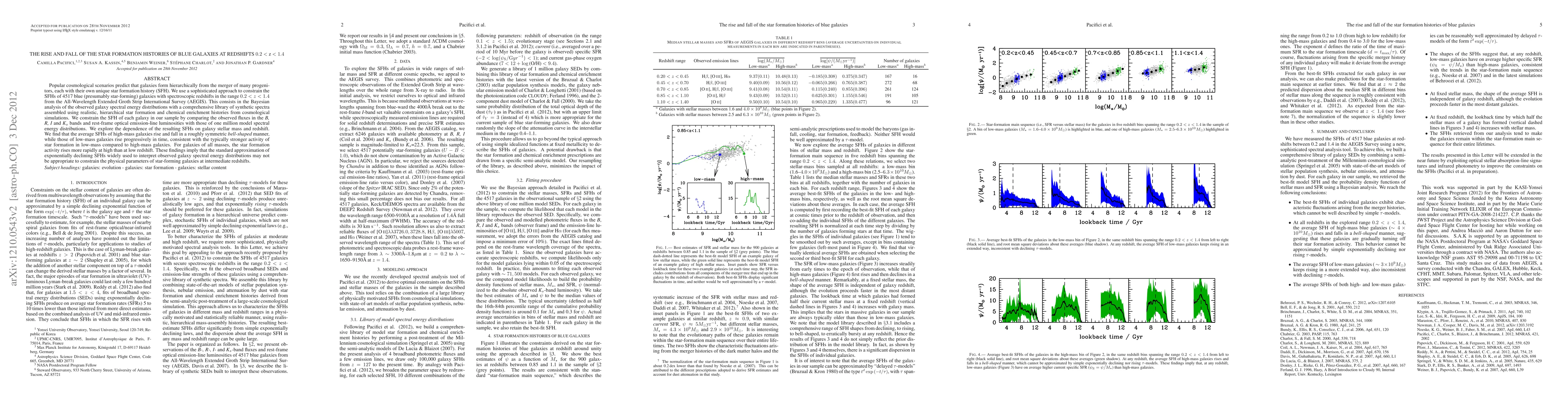 Popular cosmological scenarios predict that galaxies form hierarchically from the merger of many progenitors, each with their own unique star formation history (SFH). We use a sophisticated approach to constrain the SFHs of 4517 blue (presumably star-forming) galaxies with spectroscopic redshifts in the range 0.2 < z < 1.4 from the All-Wavelength Extended Groth Strip International Survey (AEGIS). This consists in the Bayesian analysis of the observed galaxy spectral energy distributions with a comprehensive library of synthetic spectra assembled using realistic, hierarchical star formation and chemical enrichment histories from cosmological simulations. We constrain the SFH of each galaxy in our sample by comparing the observed fluxes in the B, R, I and Ks bands and rest-frame optical emission-line luminosities with those of one million model spectral energy distributions. We explore the dependence of the resulting SFHs on galaxy stellar mass and redshift. We find that the average SFHs of high-mass galaxies rise and fall in a roughly symmetric bell-shaped manner, while those of low-mass galaxies rise progressively in time, consistent with the typically stronger activity of star formation in low-mass compared to high-mass galaxies. For galaxies of all masses, the star formation activity rises more rapidly at high than at low redshift. These findings imply that the standard approximation of exponentially declining SFHs widely used to interpret observed galaxy spectral energy distributions may not be appropriate to constrain the physical parameters of star-forming galaxies at intermediate redshifts.