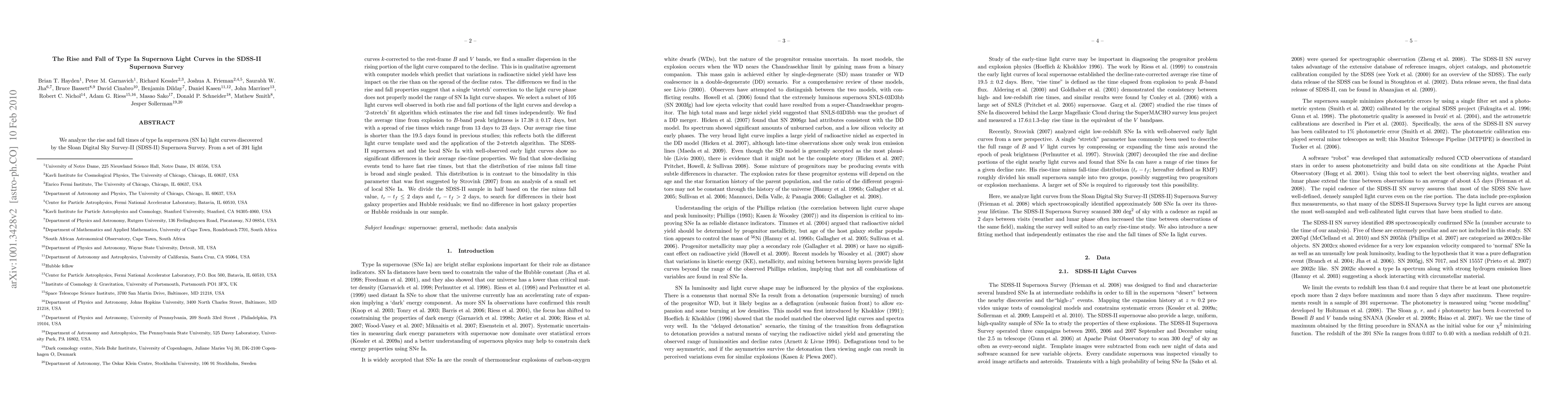 This paper analyzes the rise and fall times of 391 type Ia supernova light curves from the SDSS-II Supernova Survey, finding less dispersion in the rise compared to the decline. The study introduces a '2-stretch' fit algorithm to independently estimate rise and fall times, revealing an average rise time of 17.38 days and no significant differences in host galaxy properties or Hubble residuals between subsets defined by rise-fall time differences.