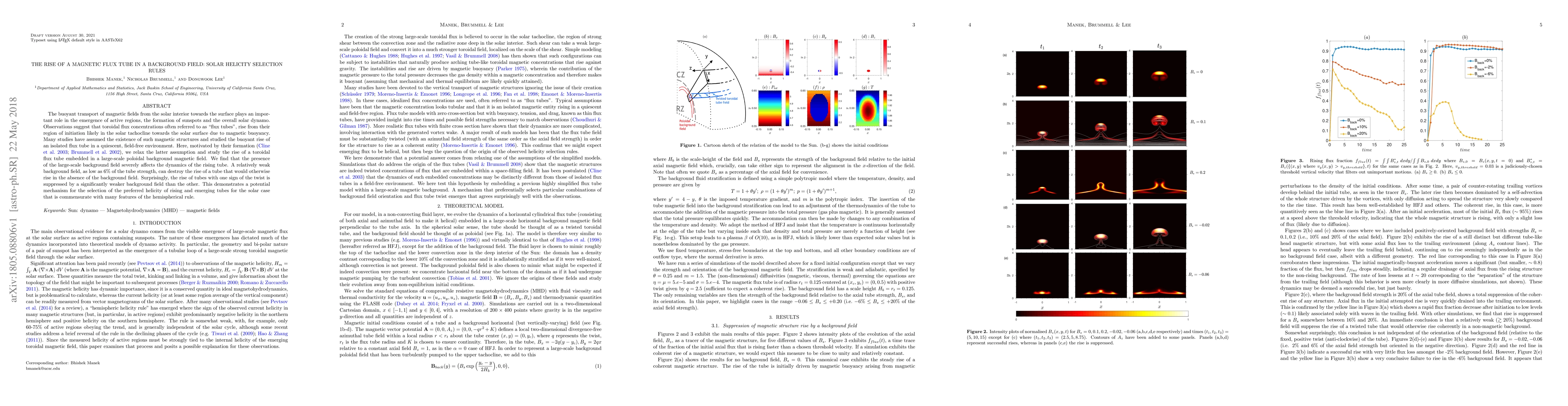 This paper investigates the buoyant rise of a toroidal magnetic flux tube in the presence of a background poloidal magnetic field, finding that the background field significantly alters the tube's dynamics and can suppress the rise of tubes with certain helicities, suggesting a mechanism for the selection of solar helicity.