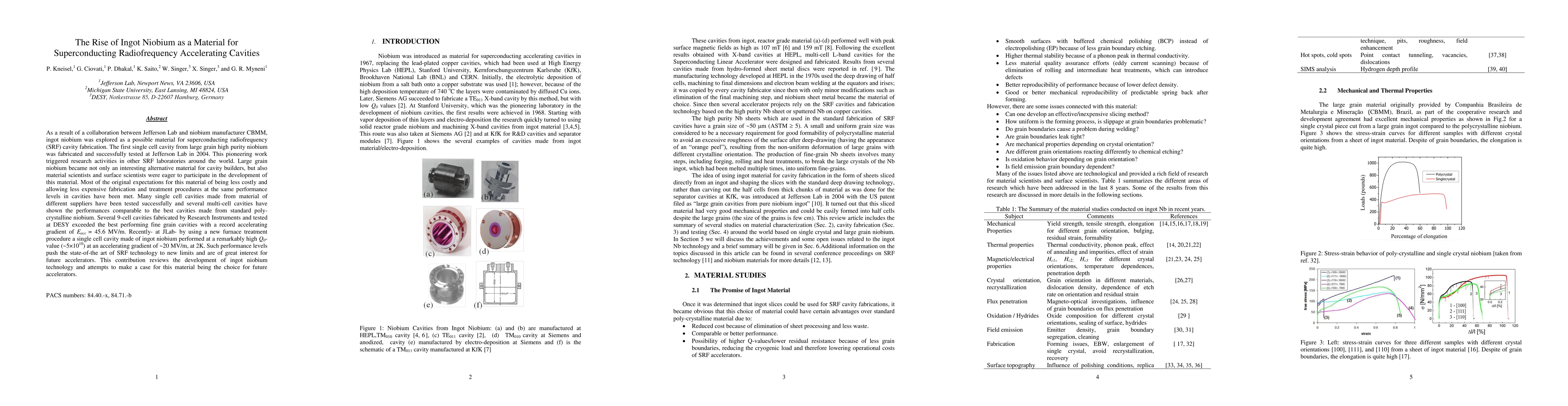 The research explores the use of ingot niobium for superconducting radiofrequency cavities, demonstrating successful fabrication and performance. Initial tests and subsequent developments have shown comparable or superior performance to standard materials, pushing the boundaries of superconducting radiofrequency technology.