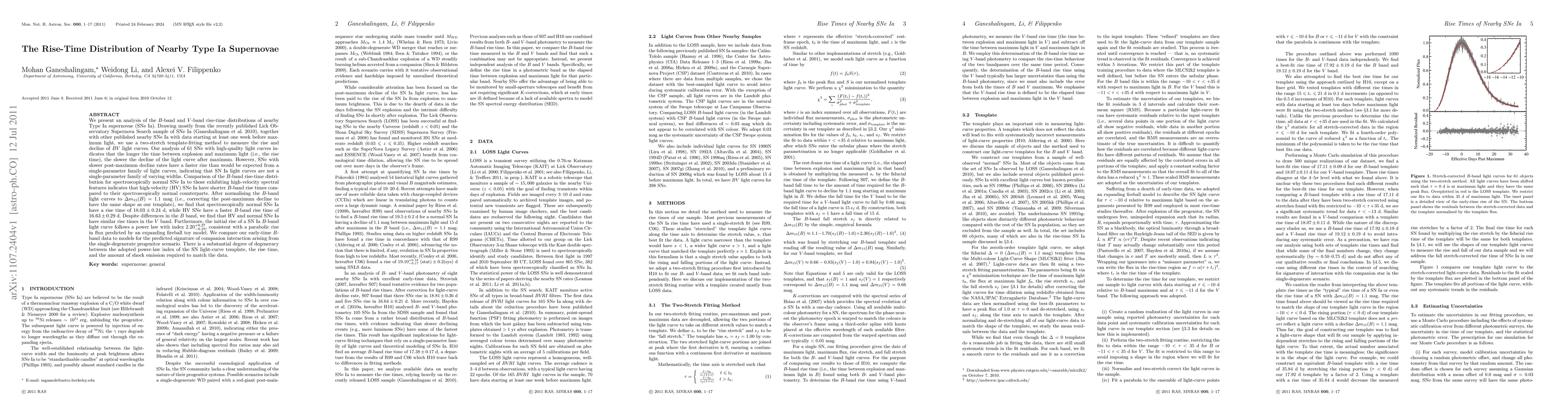 We present an analysis of the B-band and V-band rise-time distributions of nearby Type Ia supernovae (SNe Ia). We use a two-stretch template-fitting method to measure the rise and decline of BV light curves. Our analysis of 61 SNe with high-quality light curves indicates that the longer the time between explosion and maximum light (i.e., the rise time), the slower the decline of the light curve after maximum. However, SNe with slower post-maximum decline rates have a faster rise than would be expected from a single-parameter family of light curves, indicating that SN Ia light curves are not a single-parameter family of varying widths. Comparison of the B-band rise-time distribution for spectroscopically normal SNe Ia to those exhibiting high-velocity spectral features indicates that high-velocity (HV) SNe Ia have shorter B-band rise times compared to their spectroscopically normal counterparts. After normalising the B-band light curves to Dm15(B)= 1.1 mag (i.e., correcting the post-maximum decline to have the same shape as our template), we find that spectroscopically normal SNe Ia have a rise time of 18.03 +/- 0.24 d, while HV SNe have a faster B-band rise time of 16.63 +/- 0.29 d. Despite differences in the B band, we find that HV and normal SNe Ia have similar rise times in the V band. The initial rise of a SN Ia B-band light curve follows a power law with index 2.20 +0.27 -0.19, consistent with a parabolic rise in flux predicted by an expanding fireball toy model. We compare our early-time B-band data to models for the predicted signature of companion interaction arising from the single-degenerate progenitor scenario. There is a substantial degree of degeneracy between the adopted power-law index of the SN light-curve template, the rise time, and the amount of shock emission required to match the data.