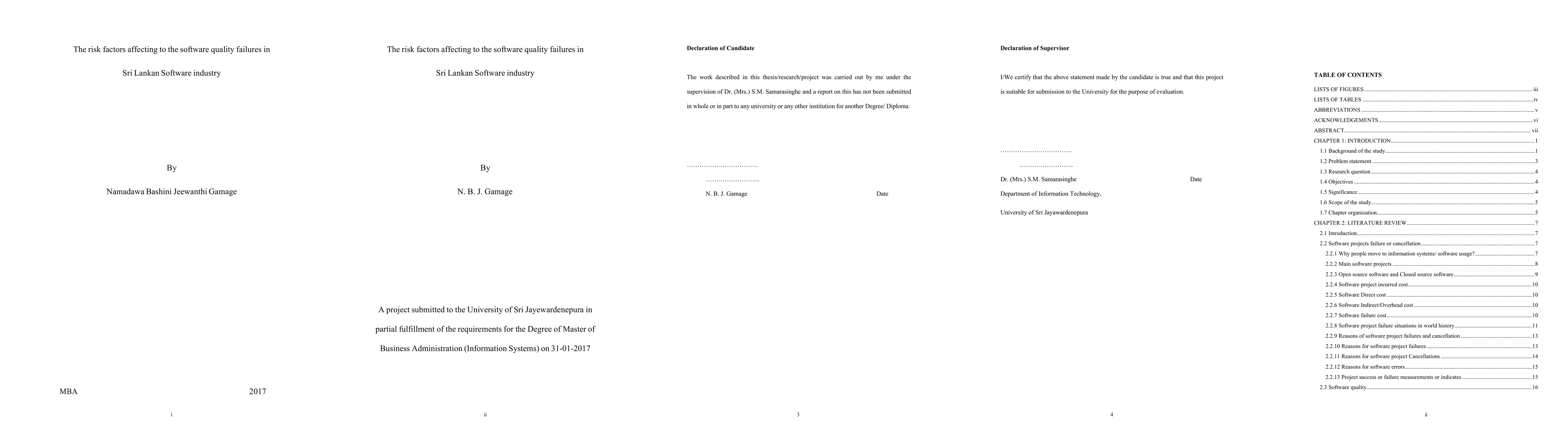 This study investigates risk factors contributing to software quality failures in Sri Lankan software industry, identifying inadequate testing resources, improper test planning, and lack of a skilled QA team as key issues. The research employs qualitative data from open-ended questionnaires, revealing that poor quality is exacerbated by unclear requirements, unrealistic test planning, and insufficient risk management.