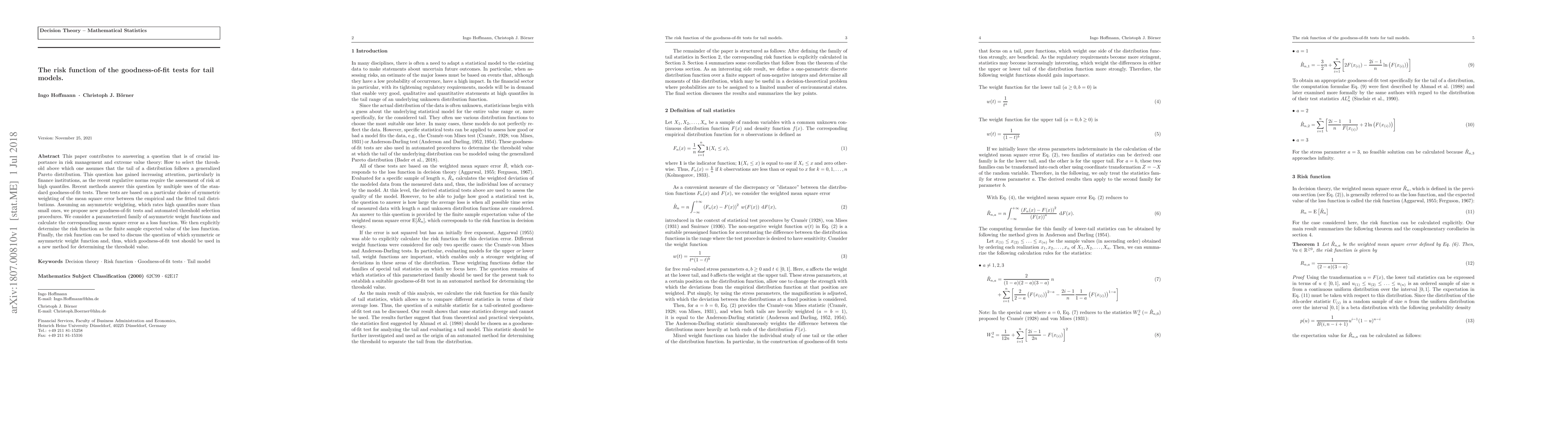 This paper proposes new goodness-of-fit tests and threshold selection procedures for tail models, using asymmetric weighting to prioritize high quantiles. It calculates the risk function as the finite sample expected value of the loss function to determine the optimal weighting method for risk management.