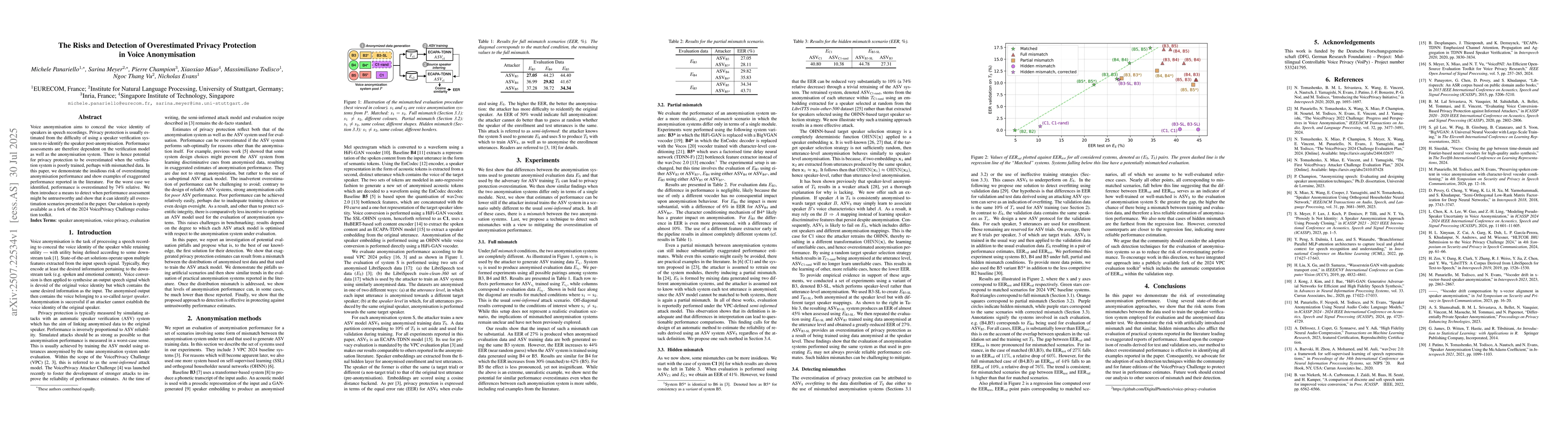 The paper evaluates voice anonymization systems by comparing their performance using a speaker verification system for re-identification post-anonymisation. It demonstrates the risk of overestimating privacy protection when verification systems are poorly trained or use mismatched data.