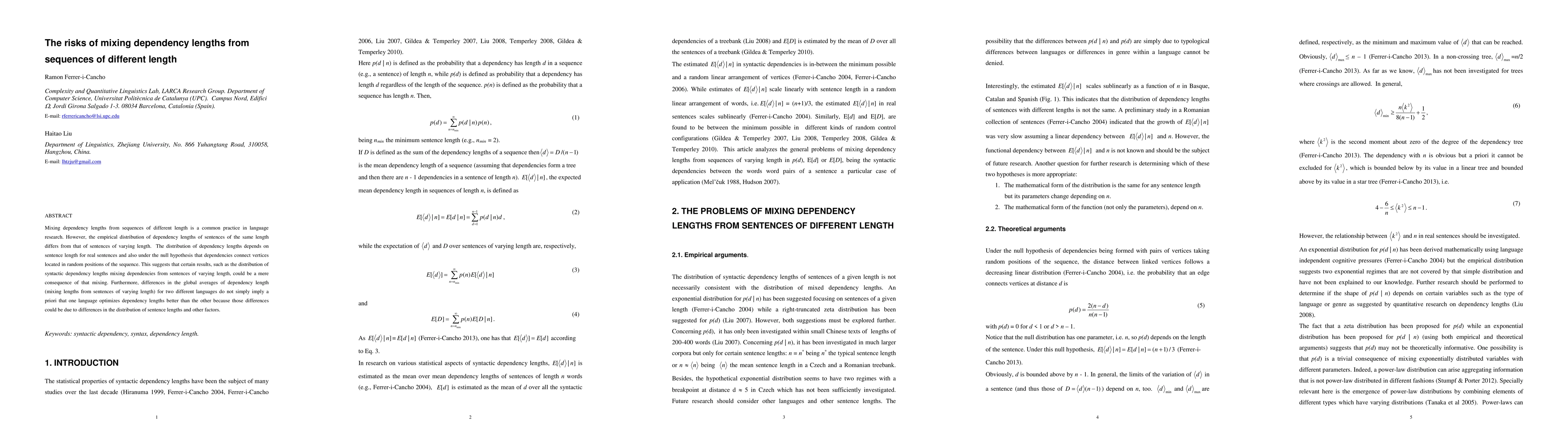 Mixing dependency lengths from sequences of different length is a common practice in language research. However, the empirical distribution of dependency lengths of sentences of the same length differs from that of sentences of varying length and the distribution of dependency lengths depends on sentence length for real sentences and also under the null hypothesis that dependencies connect vertices located in random positions of the sequence. This suggests that certain results, such as the distribution of syntactic dependency lengths mixing dependencies from sentences of varying length, could be a mere consequence of that mixing. Furthermore, differences in the global averages of dependency length (mixing lengths from sentences of varying length) for two different languages do not simply imply a priori that one language optimizes dependency lengths better than the other because those differences could be due to differences in the distribution of sentence lengths and other factors.