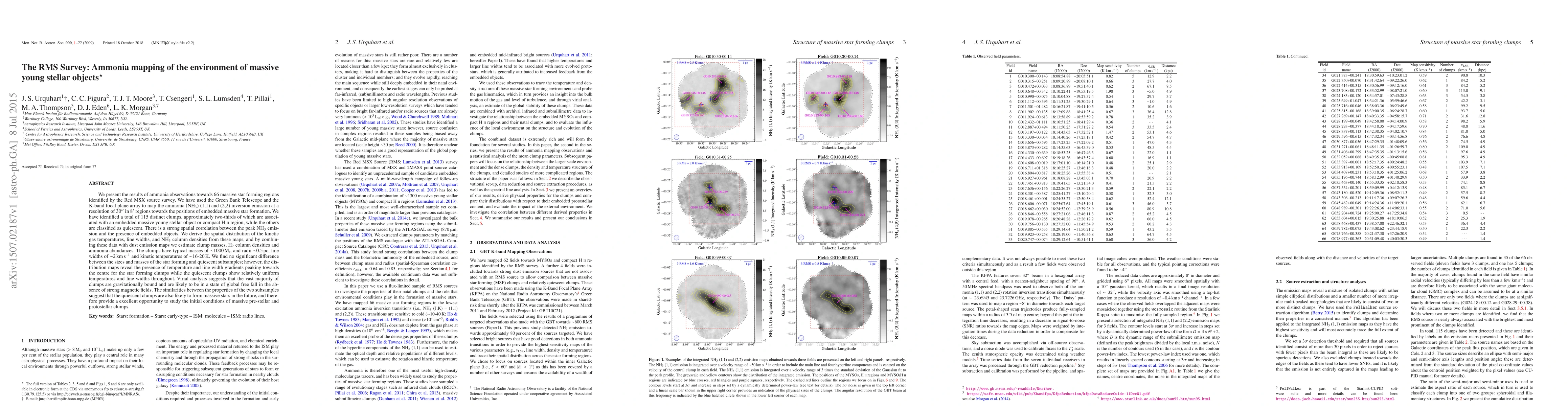 We present the results of ammonia observations towards 66 massive star forming regions identified by the Red MSX source survey. We have used the Green Bank Telescope and the K-band focal plane array to map the ammonia NH3 (1,1) and (2,2) inversion emission at a resolution of 30 arcsec in 8 arcmin regions towards the positions of embedded massive star formation. We have identified a total of 115 distinct clumps, approximately two-thirds of which are associated with an embedded massive young stellar object or compact HII region, while the others are classified as quiescent. There is a strong spatial correlation between the peak NH3 emission and the presence of embedded objects. We derive the spatial distribution of the kinetic gas temperatures, line widths, and NH$_3$ column densities from these maps, and by combining these data with dust emission maps we estimate clump masses, H$_2$ column densities and ammonia abundances. The clumps have typical masses of ~1000 Msun and radii ~0.5 pc, line widths of ~2 km/s and kinetic temperatures of ~16-20 K. We find no significant difference between the sizes and masses of the star forming and quiescent subsamples; however, the distribution maps reveal the presence of temperature and line width gradients peaking towards the centre for the star forming clumps while the quiescent clumps show relatively uniform temperatures and line widths throughout. Virial analysis suggests that the vast majority of clumps are gravitationally bound and are likely to be in a state of global free fall in the absence of strong magnetic fields. The similarities between the properties of the two subsamples suggest that the quiescent clumps are also likely to form massive stars in the future, and therefore provide a excellent opportunity to study the initial conditions of massive pre-stellar and protostellar clumps.