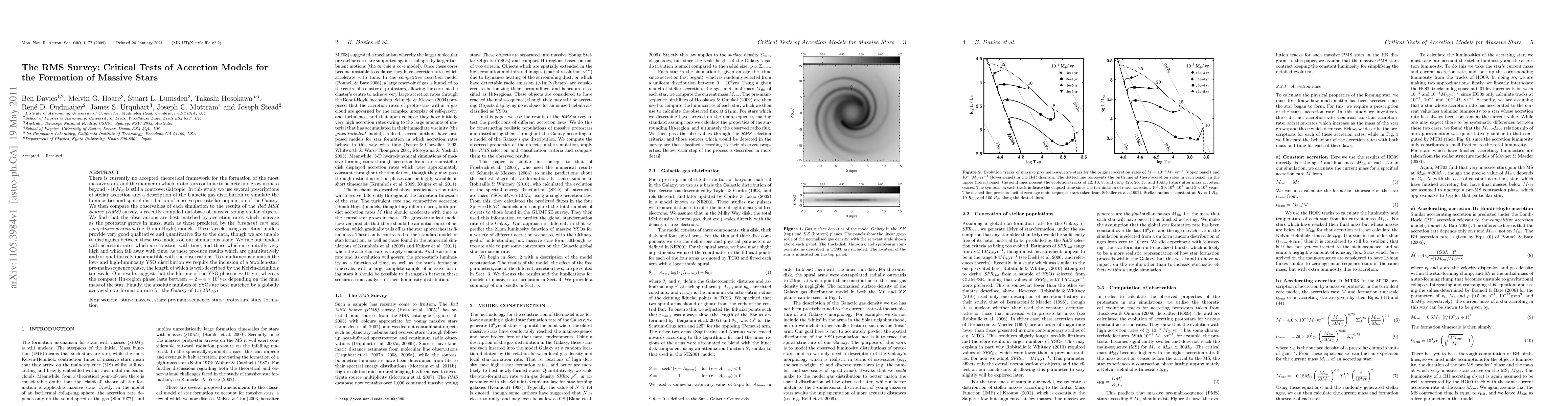 This study uses simulations of stellar accretion models to match the Red MSX Source (RMS) survey data, finding that "accelerating accretion" models best describe the formation of massive stars, while ruling out constant or decreasing accretion rates. The results suggest a star-formation rate of 1.5-2Msun/yr for the Galaxy.