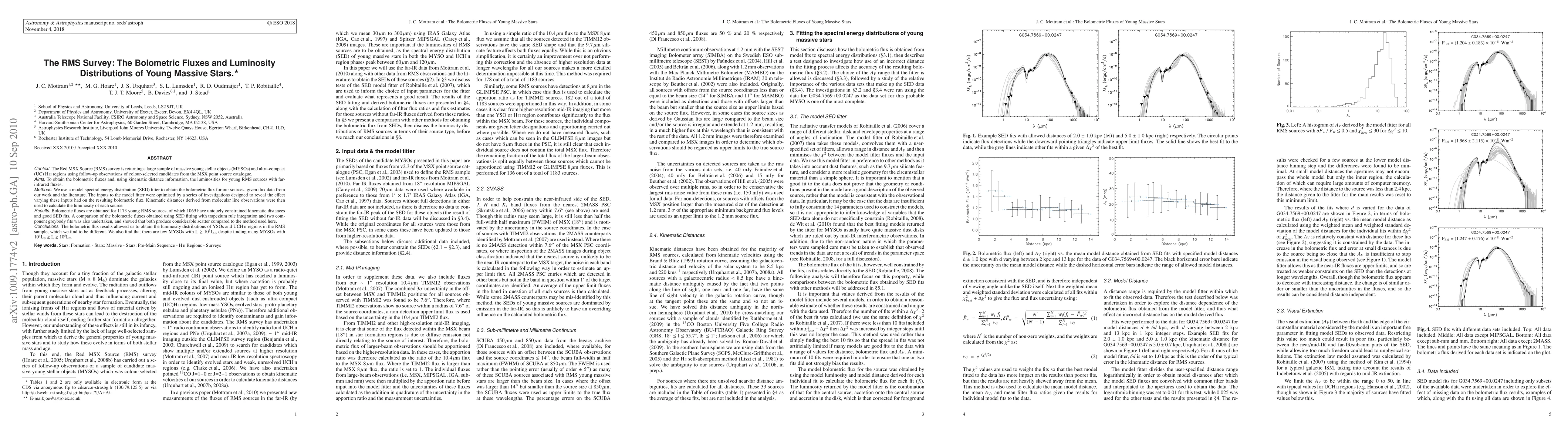 The RMS survey obtained bolometric fluxes for 1173 young massive stars, revealing distinct luminosity distributions for young massive stellar objects (YSOs) and ultra-compact HII regions. The study found few very luminous MYSOs, despite many having intermediate luminosities.
