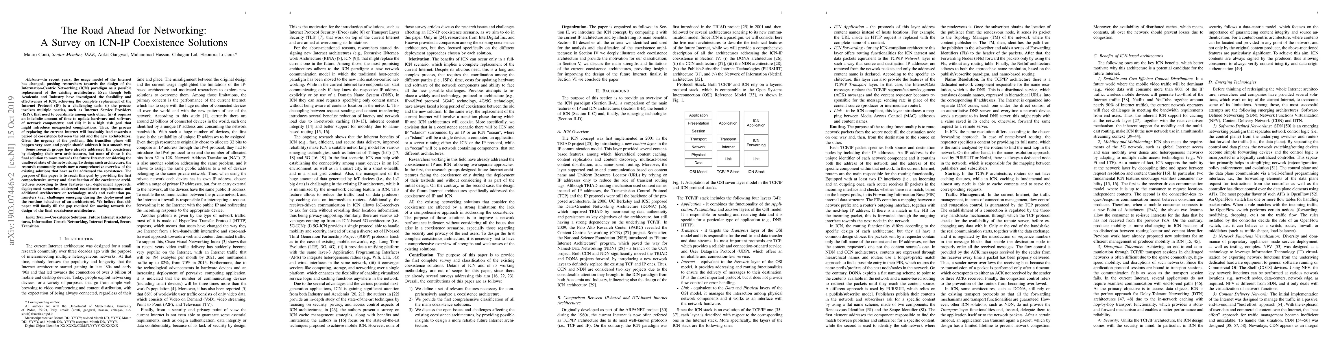 This paper provides a comprehensive survey of ICN-IP coexistence solutions, aiming to fill the gap in designing a final architecture for the future Internet. It classifies existing solutions based on features and evaluation parameters, paving the way for the design of a complete replacement for the current Internet protocol.