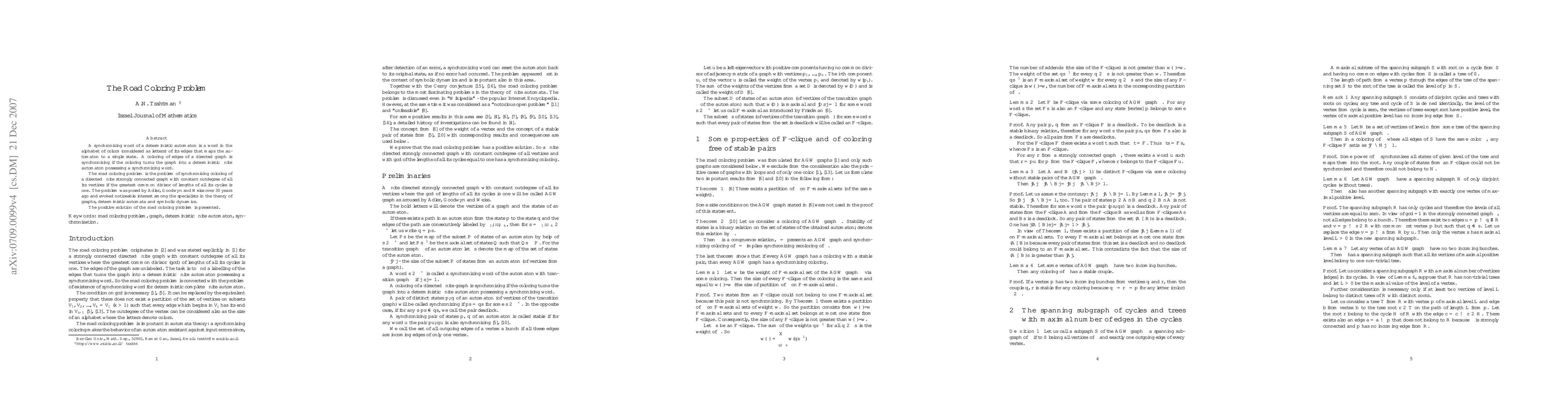 The paper presents a proof for the road coloring problem on AGW (Adler-Goodwyn-Weiss) graphs, utilizing concepts from graph theory, deterministic automata, and symbolic dynamics.