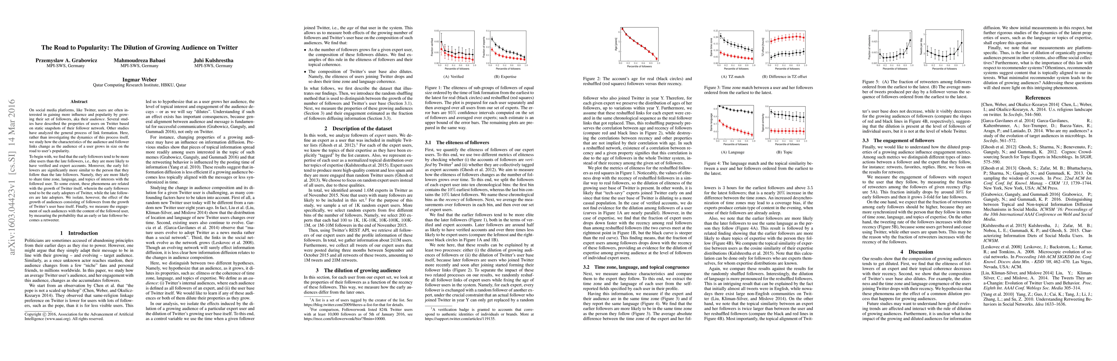 This paper examines how the characteristics of Twitter followers change as a user's audience grows, finding that early followers are typically elite, verified users with more similar interests, while later followers are less engaged. The study distinguishes these changes from the overall growth of Twitter's user base.