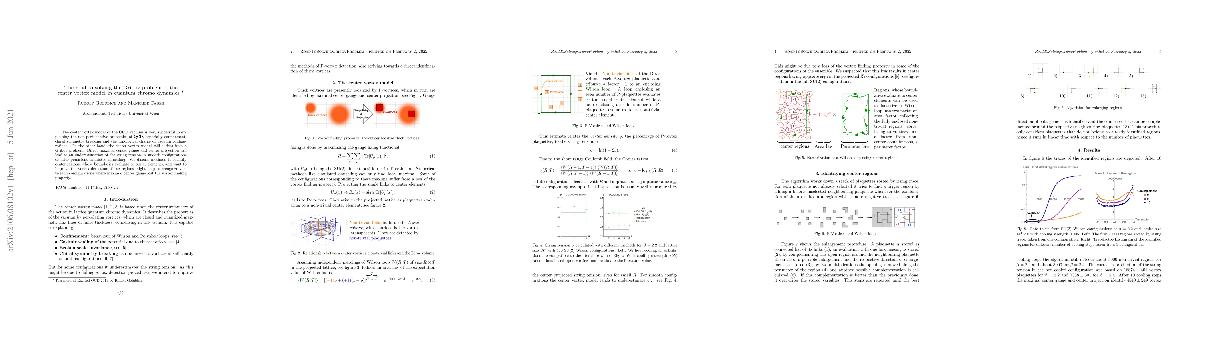 This paper addresses the Gribov problem in the center vortex model of quantum chromodynamics (QCD), aiming to improve vortex detection methods. It proposes identifying specific center regions to better recognize vortices in configurations where traditional methods fail, potentially enhancing the understanding of QCD's non-perturbative properties.