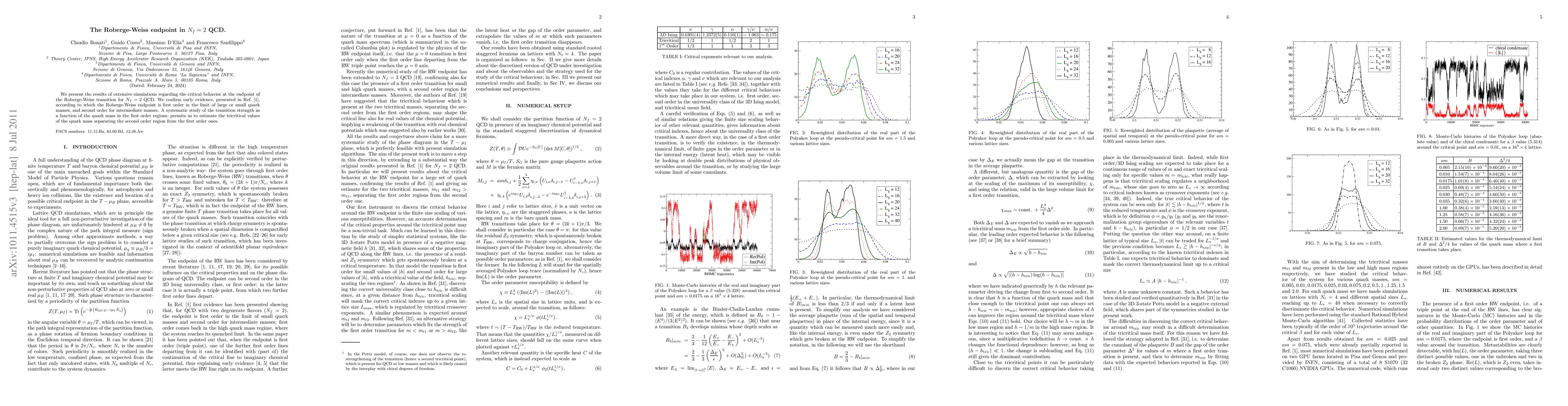 The paper presents a detailed analysis of the RW transition endpoint in N_f = 2 QCD, employing advanced lattice simulation techniques and finite-size scaling to classify the transition's order based on quark mass.