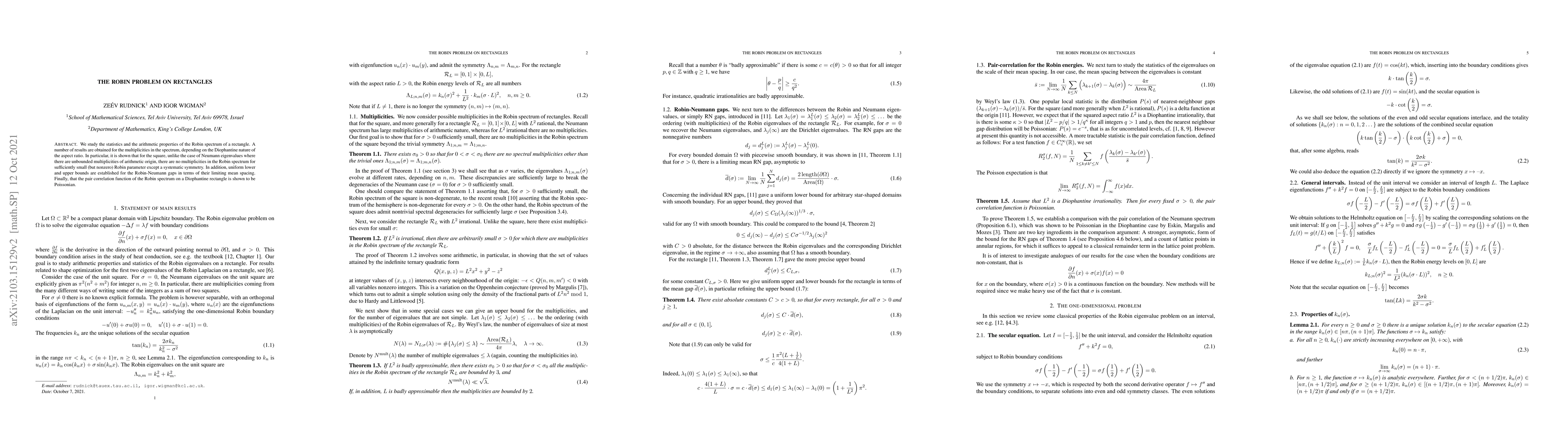 The paper studies the Robin spectrum of rectangles, finding that for a square, there are no multiplicities in the Robin spectrum except for systematic symmetry, and the pair correlation function is Poissonian.
