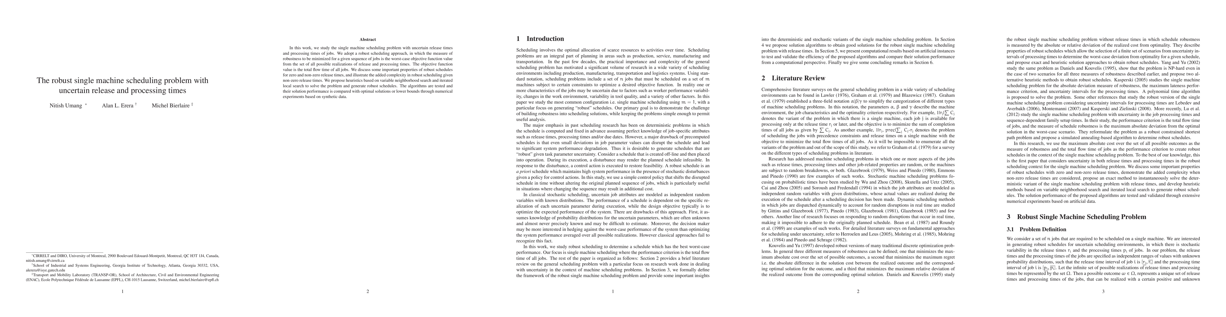 This paper investigates the robust single machine scheduling problem with uncertain job release and processing times, aiming to minimize the worst-case total flow time. It proposes heuristics based on variable neighborhood search and iterated local search to generate robust schedules and compares their performance through numerical experiments.